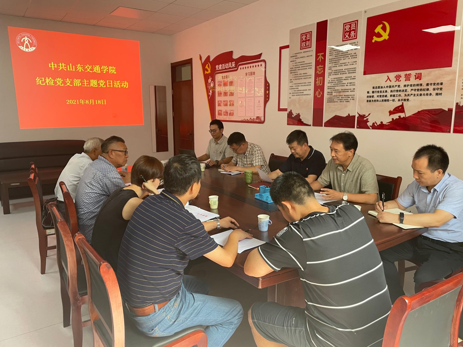 8月18日上午,纪检党支部在长清校区明德楼441开展主题党日活动,组织全体党员集体学习了《求是》杂志发表的习近平总书记的重要文章《总结党的历史经验,加强党的政治建设》。学校党委委员、纪委书记、监察专员刘世杰作为普通党员参加活动。
