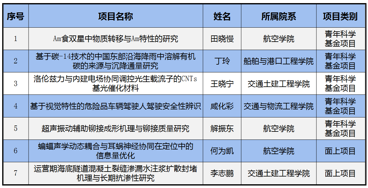 近日,国家自然科学基金委员会公布了2021年度国家自然科学基金项目评审结果,我校共有7项科研项目获得立项资助。其中青年科学基金项目5项,面上项目2项,共获批直接经费239万元,立项总数和面上项目数量均创历史最好水平。