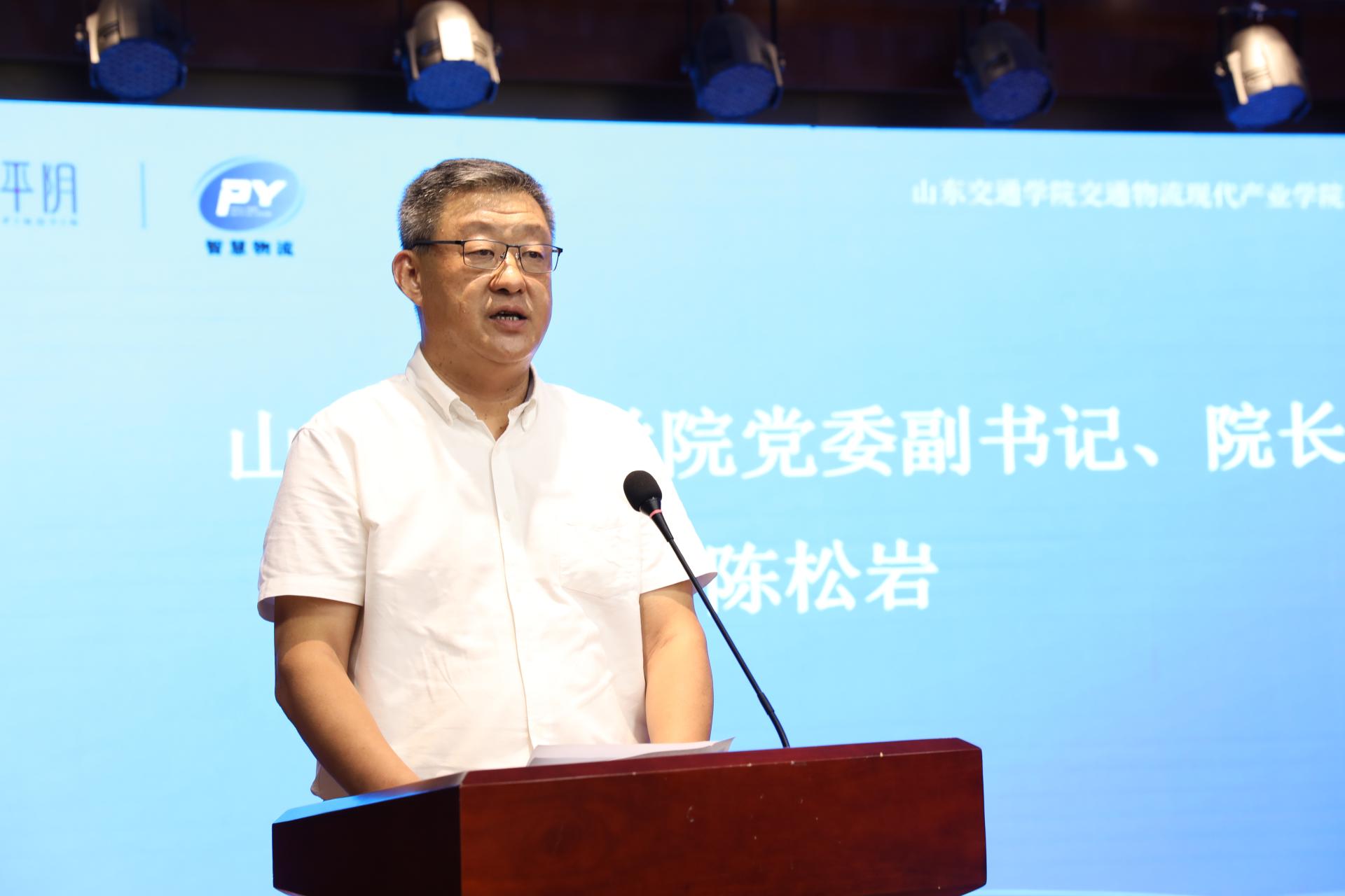 陈松岩介绍了学校的发展建设情况,对上级主管部门的工作指导、共建方和社会各界的支持表示感谢。他表示,学校坚持应用型和行业性两大特色,积极服务交通行业和地方社会经济发展。交通物流现代产业学院是推动学校产教融合、校企合作的重要载体,是推动应用型本科建设的重要举措,是实现合作办学、合作育人、合作就业的有效形式。学校将高起点、高标准、高质量地抓好交通物流现代产业学院建设,培养高素质创新人才和技术技能人才,为提高地方产业竞争力,汇聚地方发展新动能提供人才支持和智力支撑。他希望,各方以现代产业学院揭牌为契机,加强协作,优势互补,锐意进取,开拓创新,共同开启“政校企协”合作新篇章。