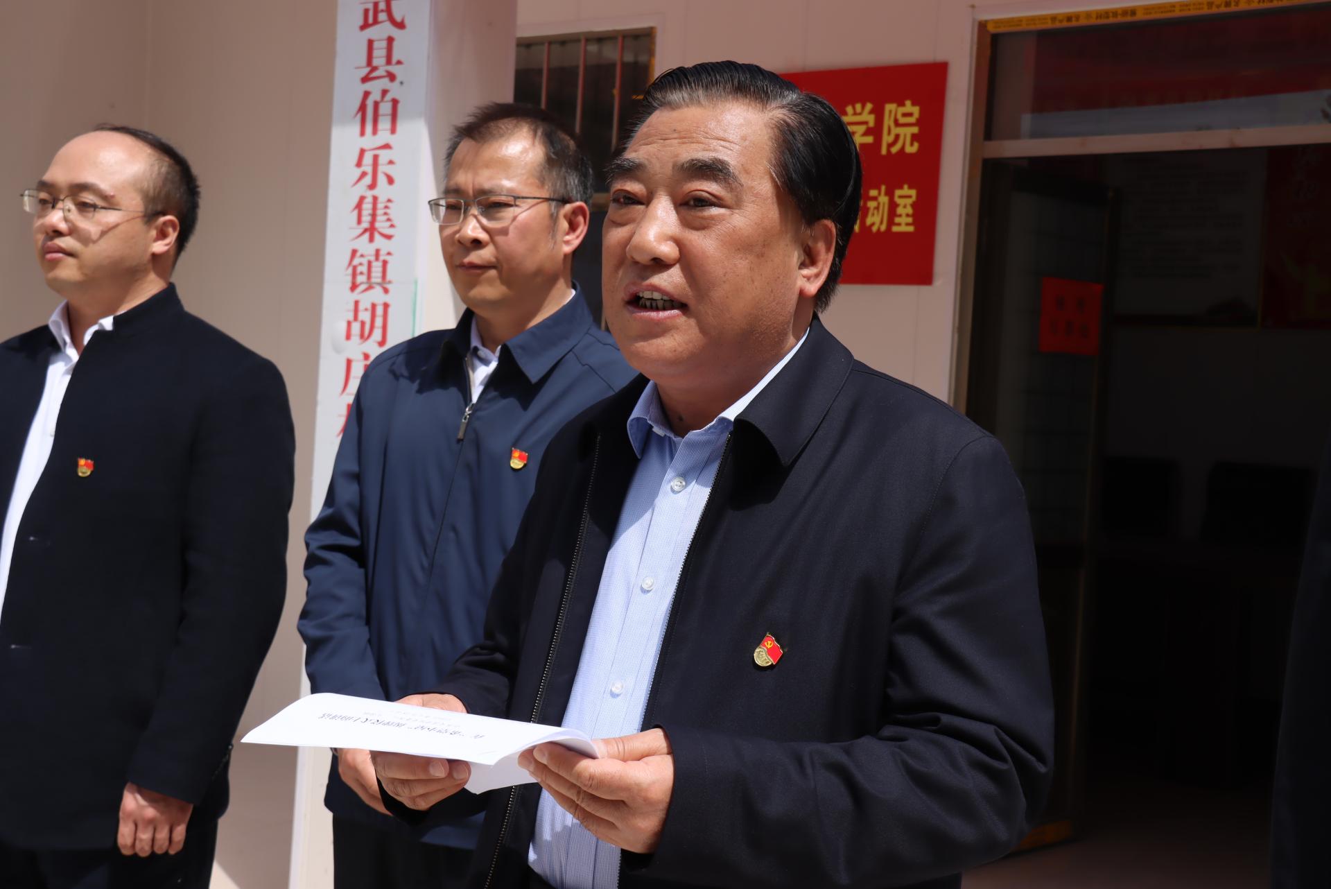 在我校“希望小屋”暨新时代文明实践志愿服务基地揭牌仪式上,王焕斌强调,乡村振兴教育先行,要以实际行动落实习近平总书记重要讲话精神,践行将“扶贫”与“扶志”、“扶智”相结合助力乡村教育振兴。他对我校第一书记驻村工作队及加强农村基层党组织建设工作队的工作给予了充分肯定,同时指出,在打赢脱贫攻坚战中“第一书记”等驻村干部发挥了不可替代的重要作用,在党中央正在实施的乡村振兴工作中,“第一书记”等驻村干部必将继续冲锋在巩固拓展脱贫攻坚成果一线,继续发挥头雁作用,成为引领广大群众奔向新生活的主力军。
