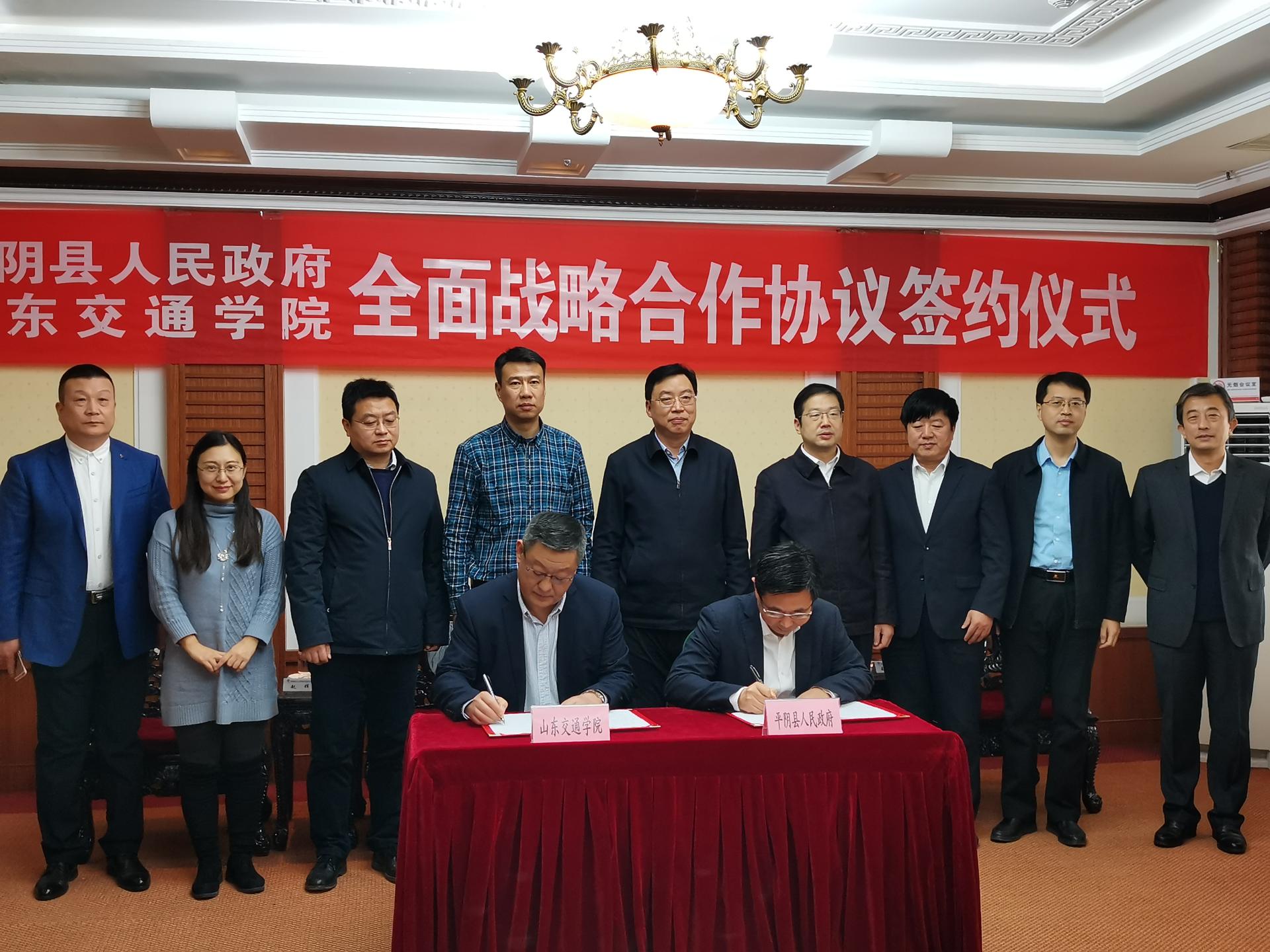 1月20日,学校与平阴县人民政府全面战略合作协议签约仪式在平阴玫苑宾馆举行。学校党委副书记、院长陈松岩,平阴县县委书记杨旭东,县委副书记、县长王秀成,副县长张海军出席签约仪式。