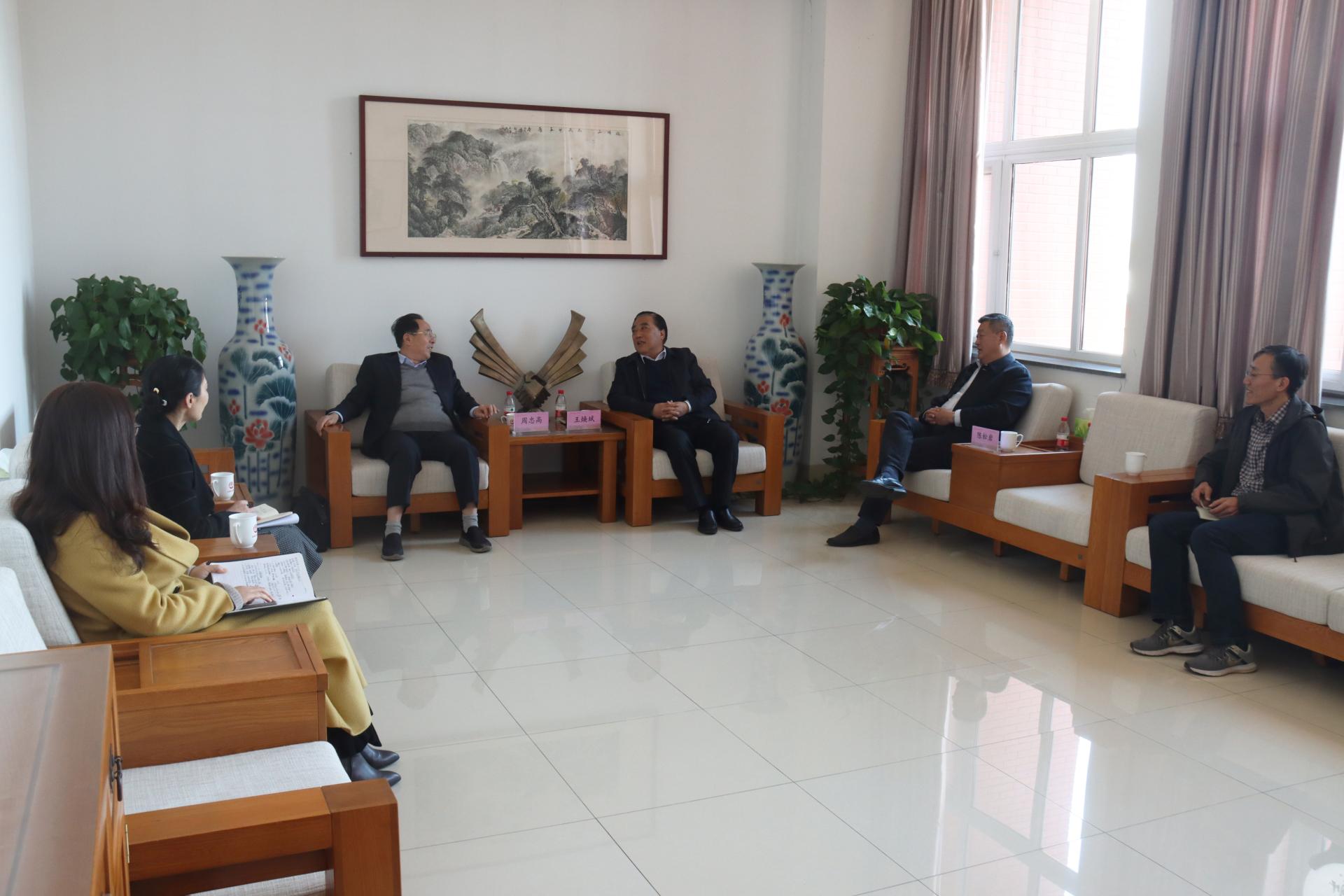讲座开始前,党委书记王焕斌,党委副书记、院长陈松岩会见了周忠高,并就提高我校哲学社会科学研究能力、提升人文社科研究的总体水平和质量进行了交流。周忠高结合我校实际,对如何激发教师的科研创新活力,提升教师科研创新能力提出了意见和建议。