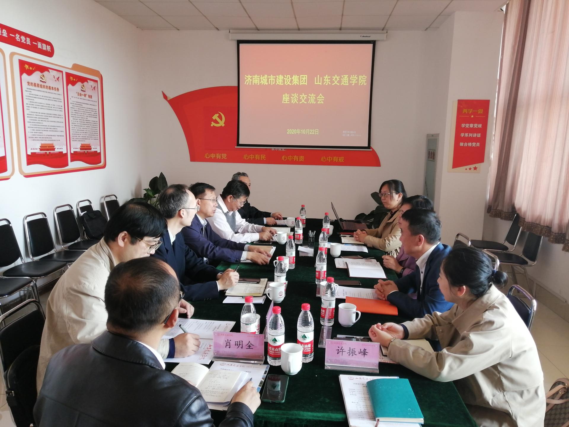 姜秀杰介绍了济南城市建设集团在城市开发等主营业务的六大版块经营内容,特别是在道路桥梁等交通基础设施、交通装备建设等方面和我校开展的一些合作项目,表达了今后在科技成果转化应用、交通产品研发、技术咨询等领域加强合作交流的愿望。