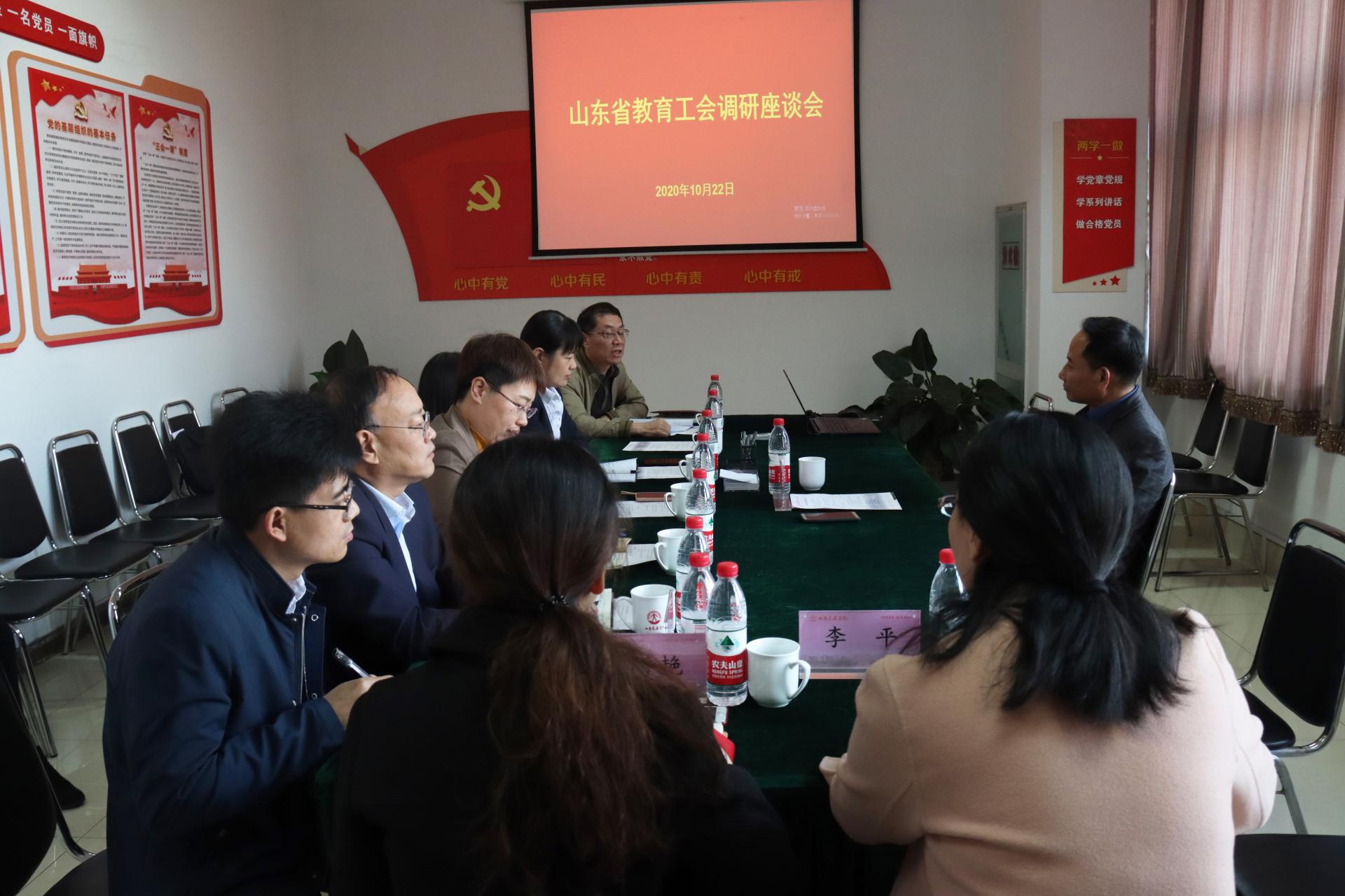 10月22日,山东省教育工会主席宋志明来校调研工会工作。会前,党委副书记、院长陈松岩会见宋志明,党委委员、党委宣传部部长周颜玲出席座谈会。