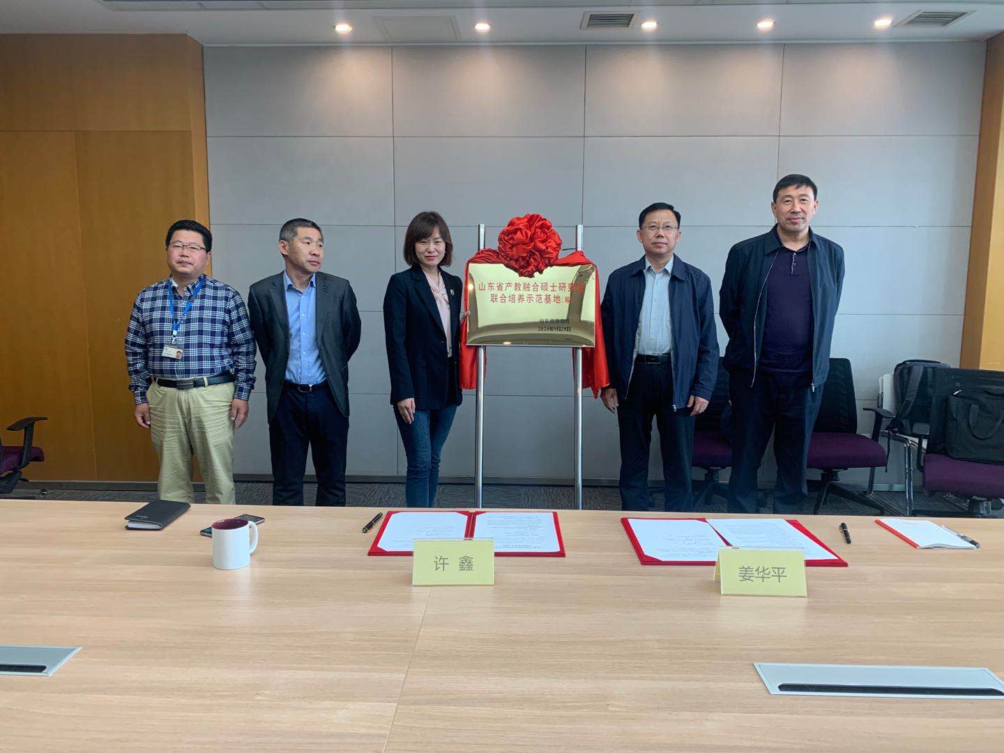 考察调研期间,姜华平分别与中集海洋工程研究院副总经理滕瑶、黄海造船有限公司董事长赵建平进行座谈交流,就基地管理模式与运行机制、研究生培养、联合导师队伍建设、经费投入、合作研究(研发、技术等)、培养环境与条件建设、资源共享等达成共识。姜华平代表学校与两家合作单位签署了《山东省产教融合研究生联合培养示范基地立项建设承诺书》并授牌。