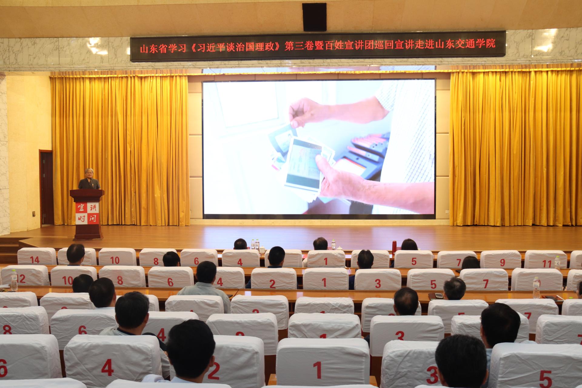 9月14日下午,山东省委宣传部、省委讲师团组织的全省学习《习近平谈治国理政》第三卷暨“中国梦·新时代·话小康”百姓宣讲在我校长清校区学术报告厅举行。省委讲师团副团长王为华、省委教育工委宣教处副处长(挂职)于恬出席宣讲会。宣讲会由学校党委副书记唐勇主持。
