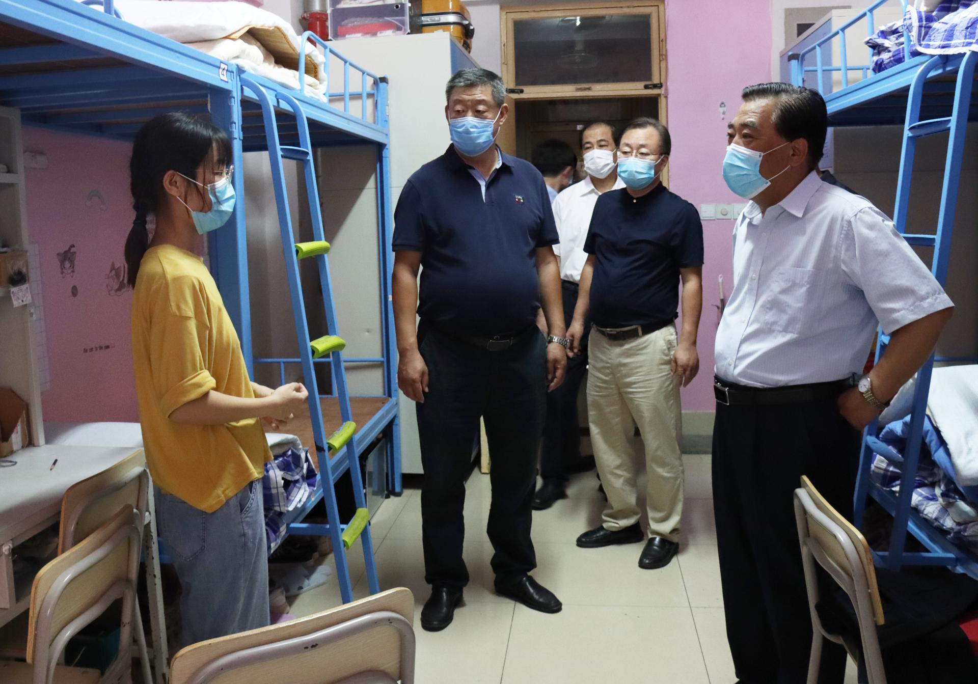 在学生宿舍,学校领导亲切地询问返校学生的学习、住宿等情况。