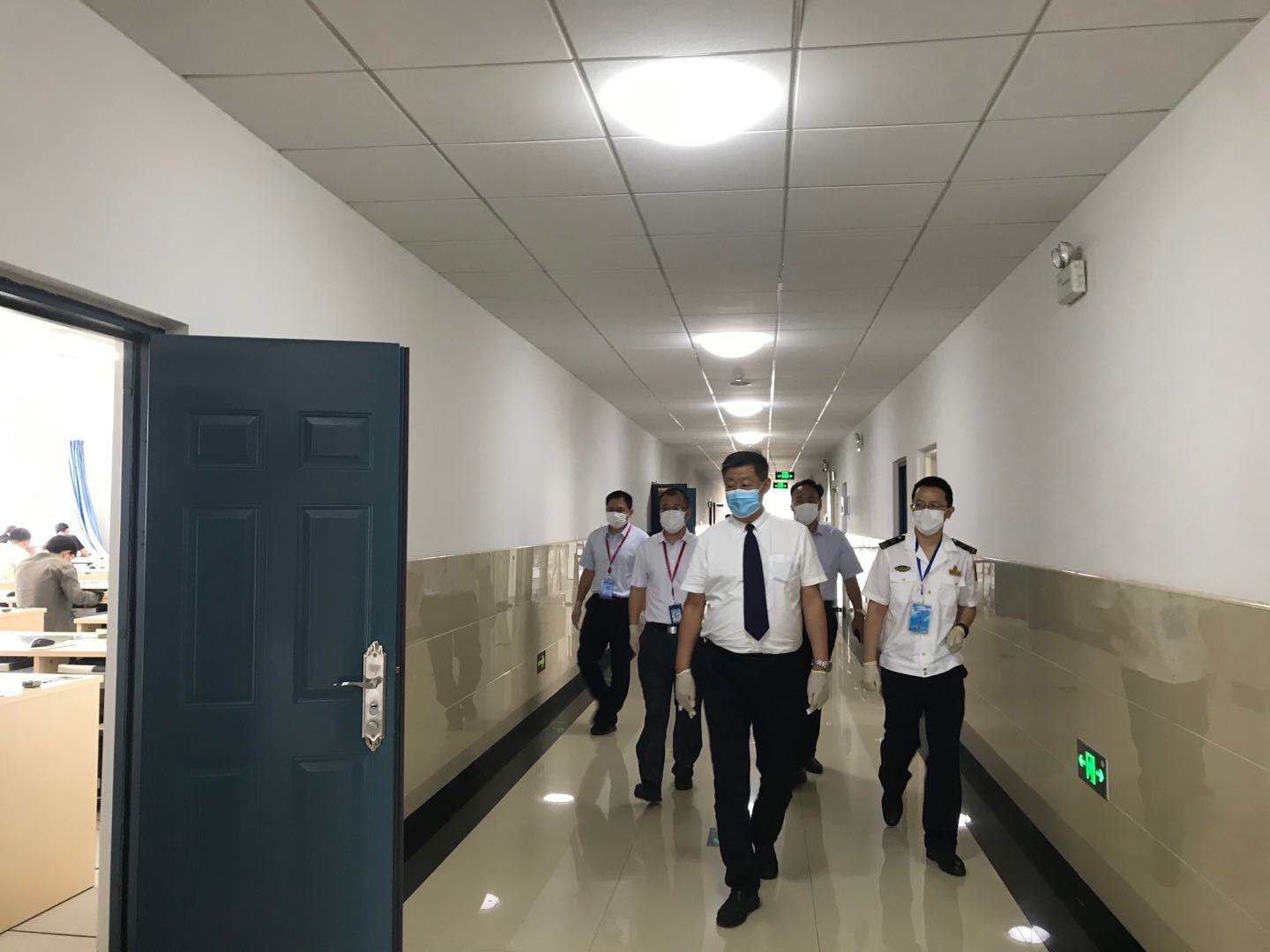 典礼结束后,陈松岩、李贞涛一行察看了船员培训复学复考工作及海船船员适任证书考试现场,与威海海事局船员管理处处长王洪亮进行了亲切交流。