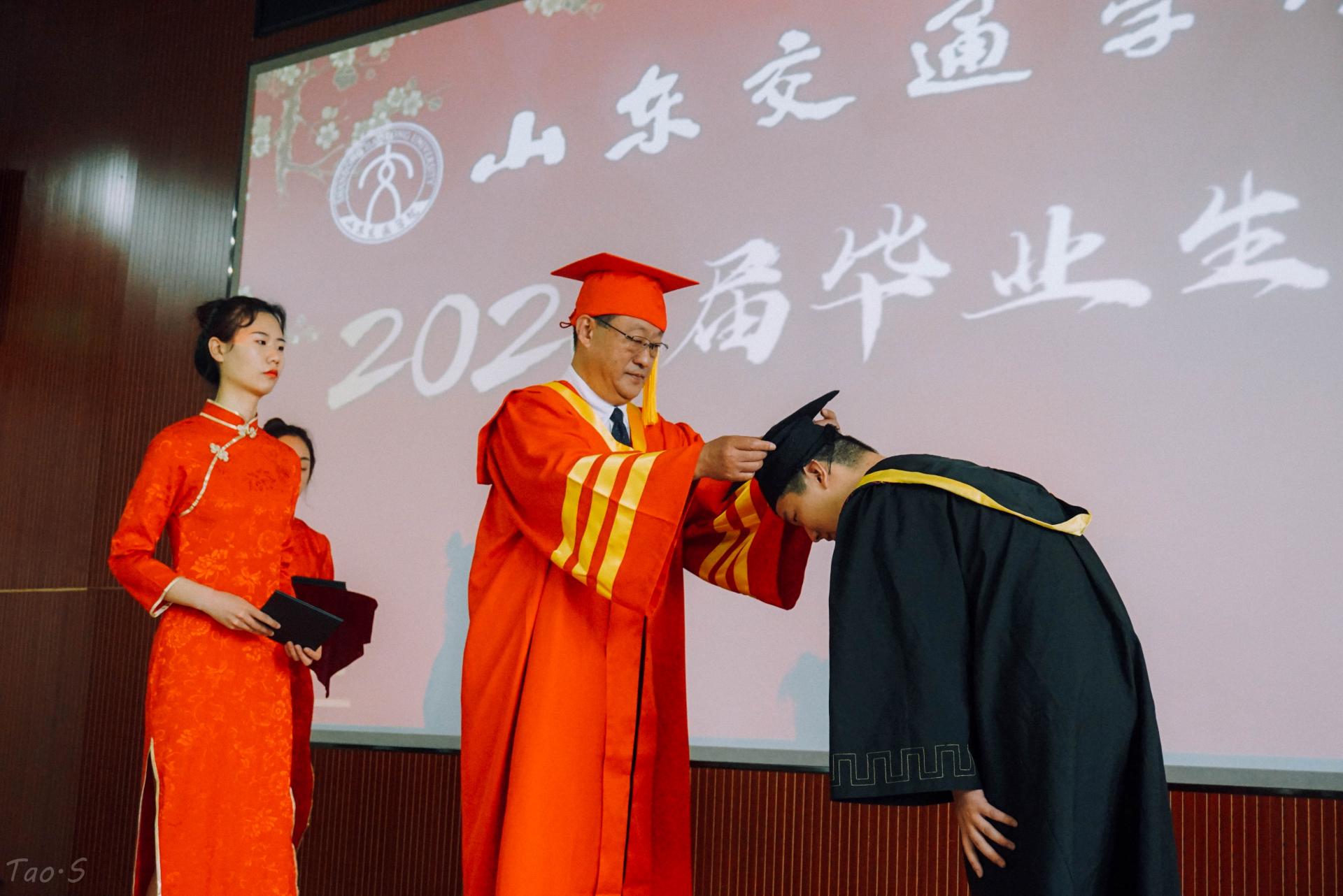 陈松岩为威海校区2020届毕业生代表逐一正冠、拨穗,颁授毕业证和学位证书并合影留念。他在毕业典礼致辞中希望同学们,一要学会担当,勇挑时代重任,肩负国家重托,勤奋工作、无私奉献;二要努力奋斗,始终弘扬“爱校 敬业 务实 创新”的交院人精神,不忘初心、砥砺奋进;三要勇于创新,始终保持敏锐的洞察力,敢为人先、大胆探索,争做行业的先行者。