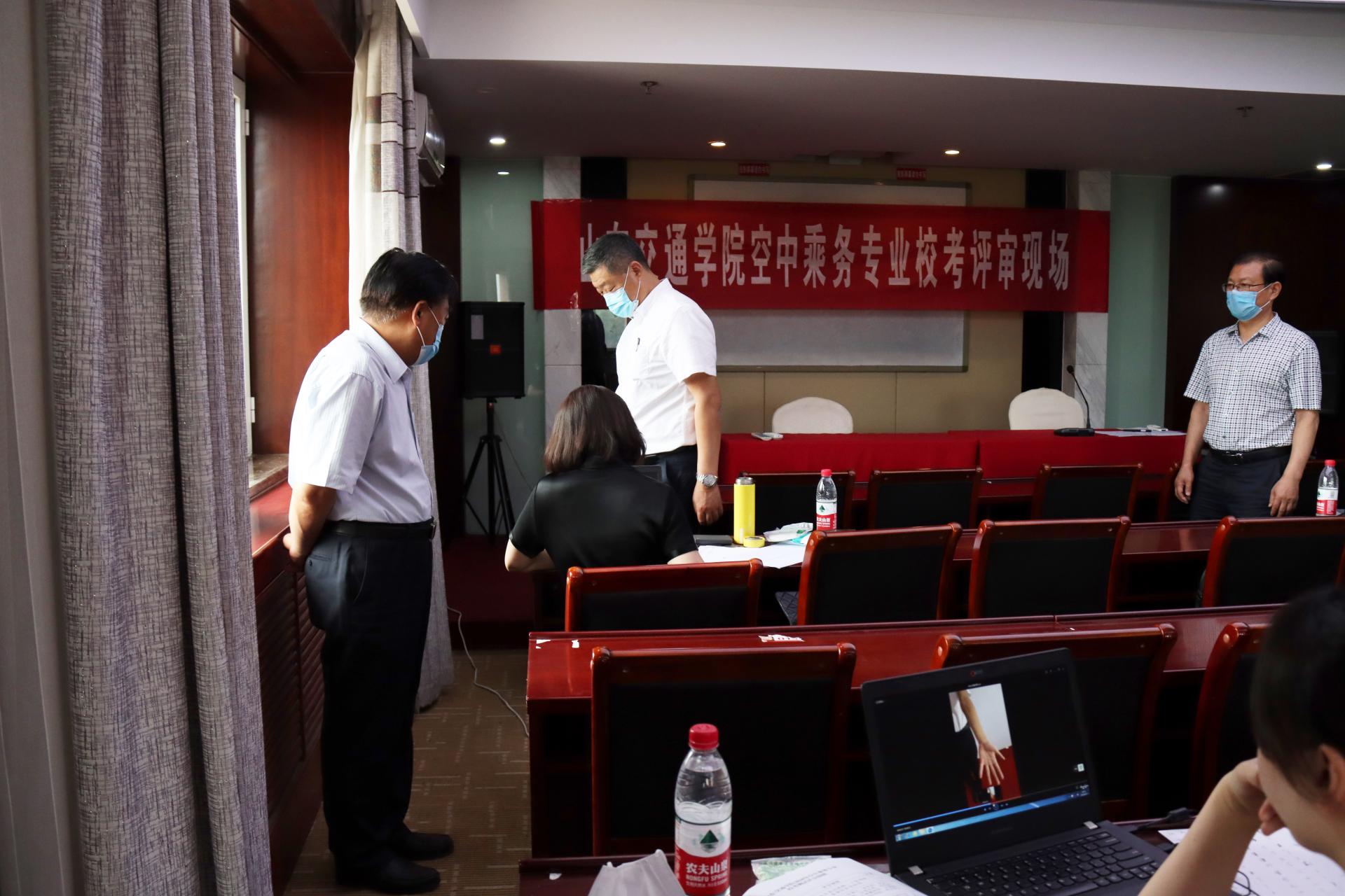 6月17日上午,党委书记王焕斌,党委副书记、院长陈松岩,副院长孔祥云到空中乘务专业校考集中评审现场检查指导工作。