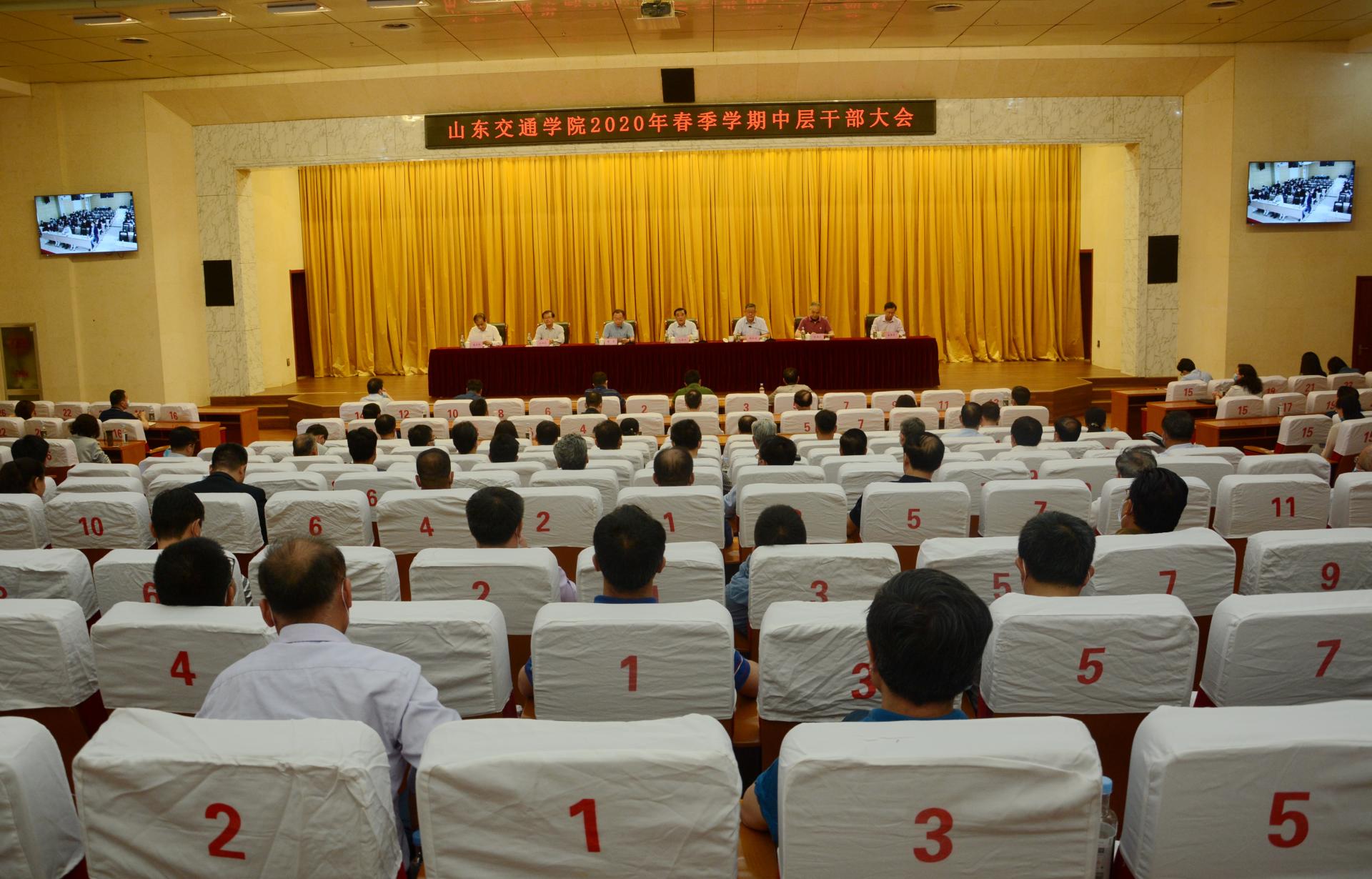 学校全体中层干部参加会议,威海校区相关人员通过视频参加了会议。