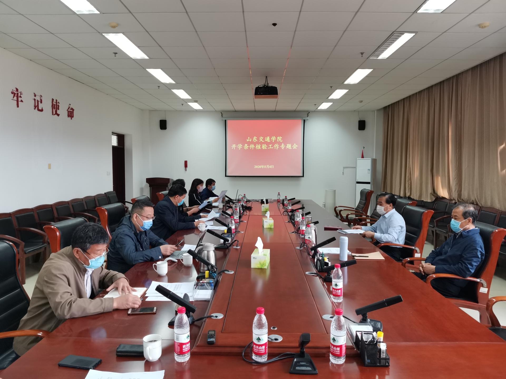 5月4日上午,学校在长清校区办公楼第一会议室召开2020年春季学期开学条件核验专题会。党委书记、疫情处置工作领导小组组长王焕斌,副院长、疫情处置工作领导小组副组长孟庆旭出席会议。会议由王焕斌主持。
