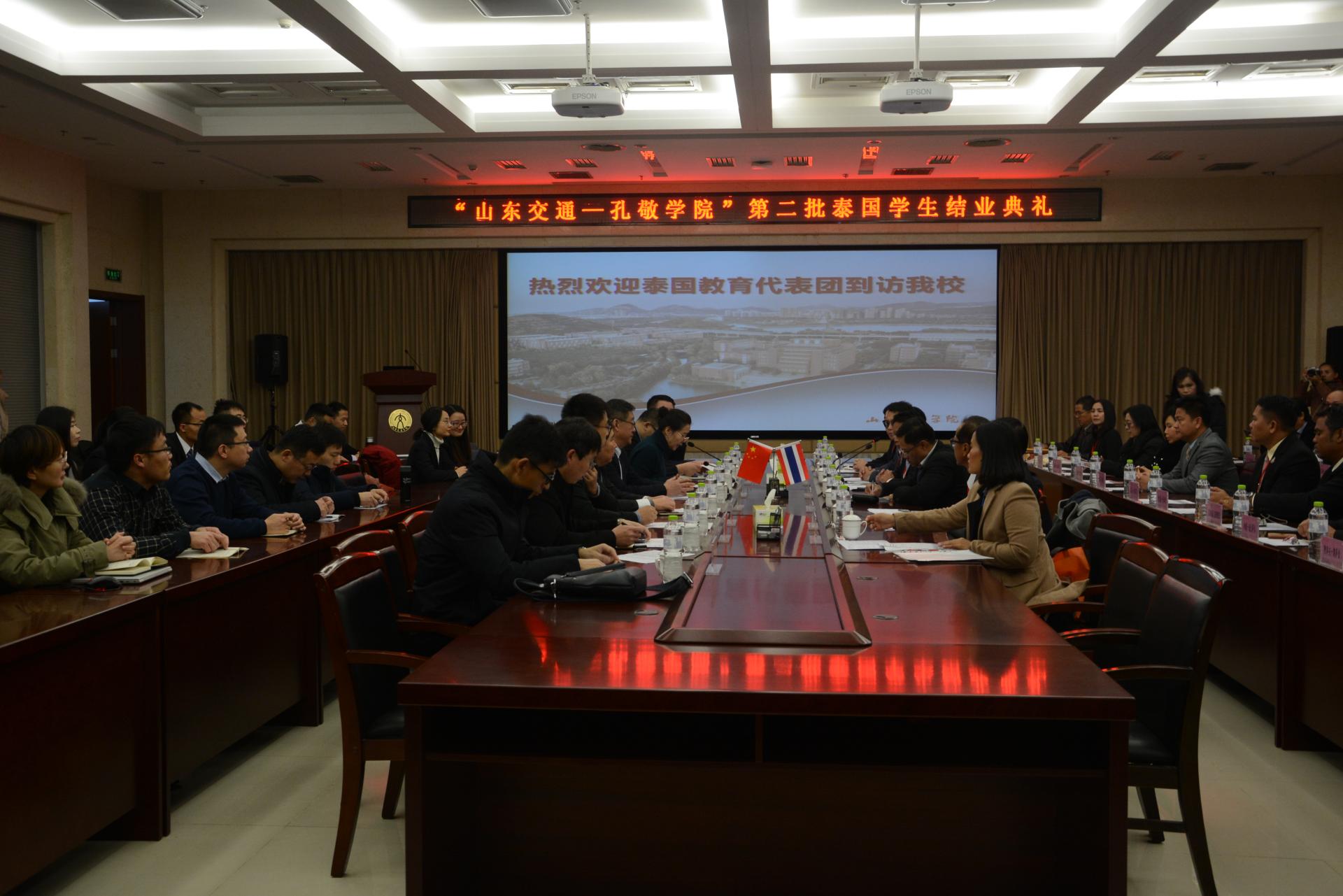 1月7日至10日,由泰国职业教育委员会高级官员阿塔迫·桑卡瓦舍、孔敬工业社区教育学院院长阿杜·平松率领的泰国教育代表团一行33人到访我校长清校区,参加“山东交通——孔敬学院”第二批泰国学生结业典礼。院长陈松岩出席仪式并致辞。