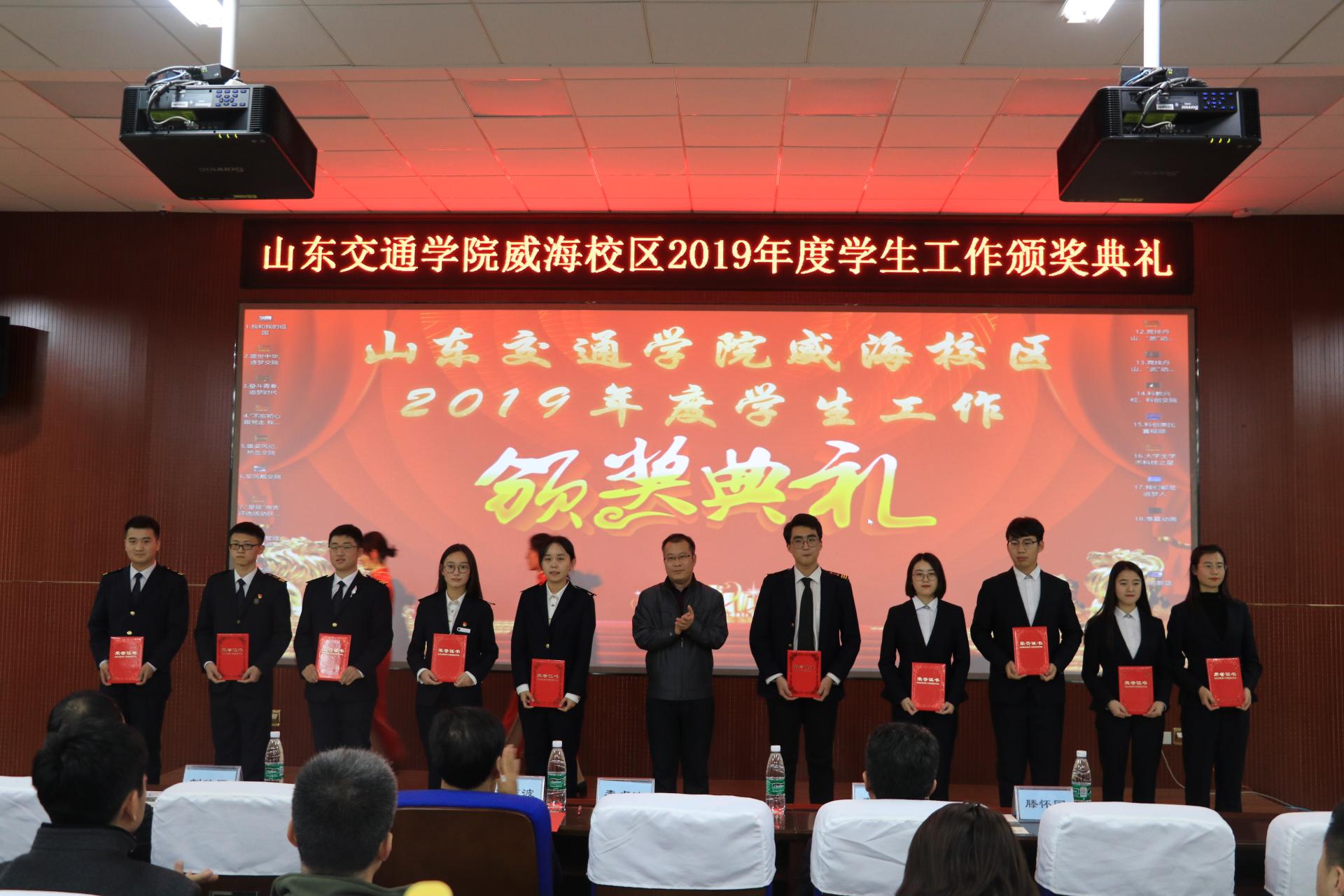 为深入贯彻落实《新时代爱国主义教育实施纲要》,发挥先优典型示范引领作用,12月11日,威海校区2019年度学生工作颁奖典礼在第二报告厅举办。副院长李贞涛出席活动并为获奖同学颁奖。