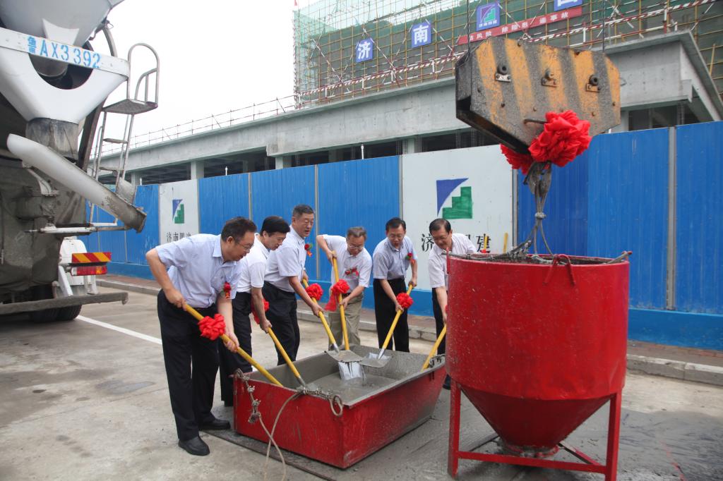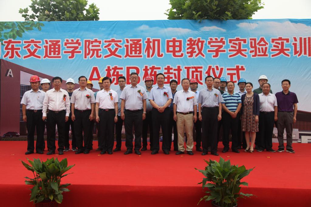 7月9日上午,我校举行交通机电教学实验实训楼工程主体结构封顶仪式。院长陈松岩,党委副书记唐勇,副院长孔祥云、姜华平,济南四建集团党委副书记、总经理李力,济南长兴集团党委副书记、总经理董春普参加庆典仪式。
