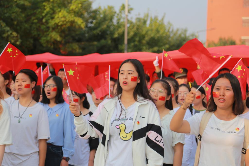 活动最后,全体人员齐唱《我和我的祖国》。在校国旗护卫队的带领下,长清校区2019级全体新生将一面巨型国旗双手托起,由学校图书馆一路向东,缓缓传递至“不忘初心 、牢记使命”主题雕塑,以此表达全校师生对祖国的爱国之情、报国之志。