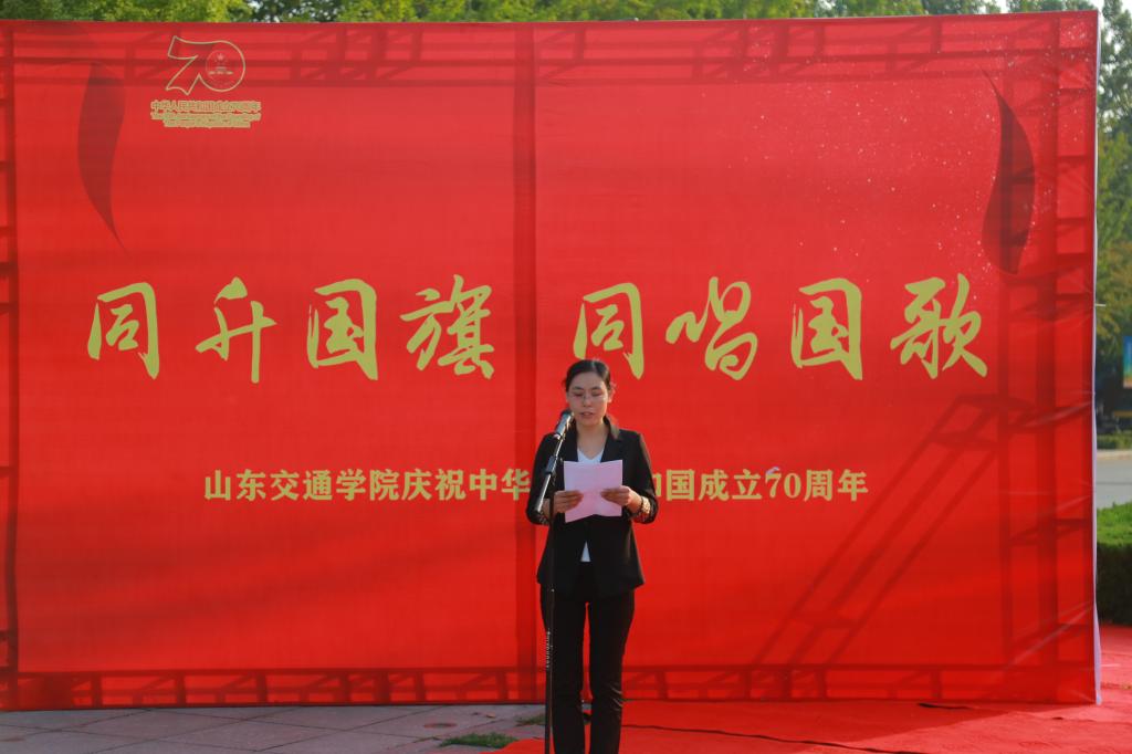 为庆祝中华人民共和国成立70周年,激发全校师生爱国之情、报国之志,根据学校“不忘初心、牢记使命”主题教育的部署安排,9月29日上午,学校“同升国旗、同唱国歌”主题教育活动在长清校区举行。学校领导孙秀丽、陈松岩、唐勇、徐晓红、李贞涛、孔祥云、范玉斌、孟庆旭出席活动。活动由团委书记周颜玲主持。