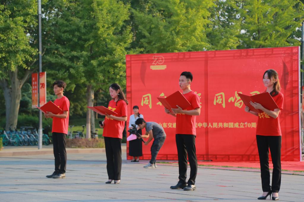 升旗仪式结束后,诗朗诵《泱泱华夏、吾辈当自强》表达了交院学子对中华人民共和国70年砥砺奋斗、70年艰苦创业、70年改革创新所取得的巨大成就的骄傲与自豪,表达了青年学生为祖国繁荣富强贡献力量的信心与决心。