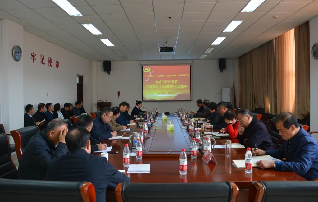 11月18日,党委书记孙秀丽在长清校区办公楼第一会议室开展“书记第一讲”,宣讲十九届四中全会精神。学校领导陈松岩、唐勇、徐晓红、孔祥云、范玉斌、姜华平、孟庆旭,“不忘初心、牢记使命”主题教育领导小组办公室成员、各分党委(党总支)书记参加学习。
