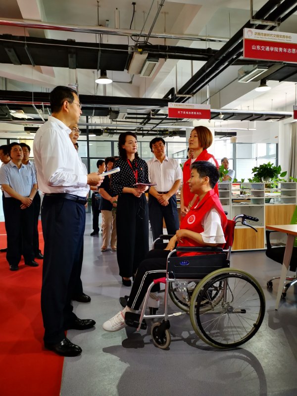 在济南市新时代文明实践中心山东交通学院志愿服务项目孵化区,关志鸥详细询问了学校志愿服务工作开展情况,了解到我校联合济南市新时代文明实践中心成立了全国高校首支文明实践志愿服务总队,对近几年泉城义工山东交通学院服务团开展的系列活动,服务团12年来风雨无阻帮助青年残疾作家钟倩,学校成立钟倩工作室、聘任钟倩担任大学生校外导师等工作表示赞同,勉励大家继续做好志愿服务。
