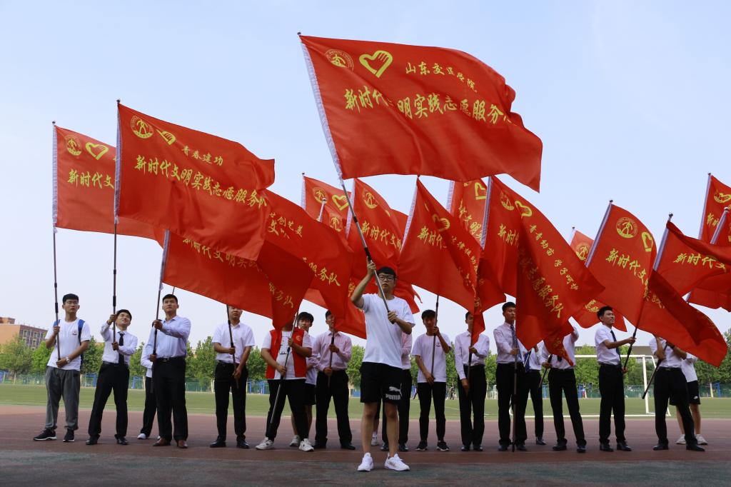活动中,中共济南市委宣传部志愿服务工作处(新时代文明实践工作处)处长张伟为我校新时代文明实践志愿服务总队授旗。