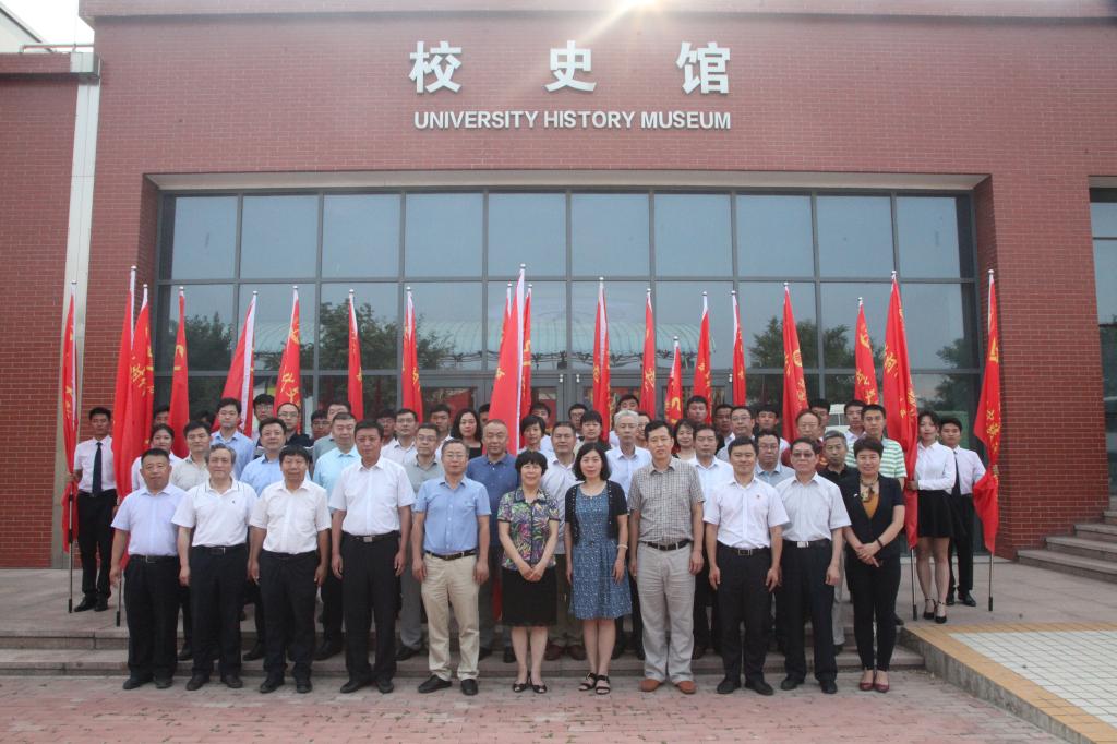 会后,孙秀丽、唐勇陪同曹湧、曲京鹏等参观了校史馆。