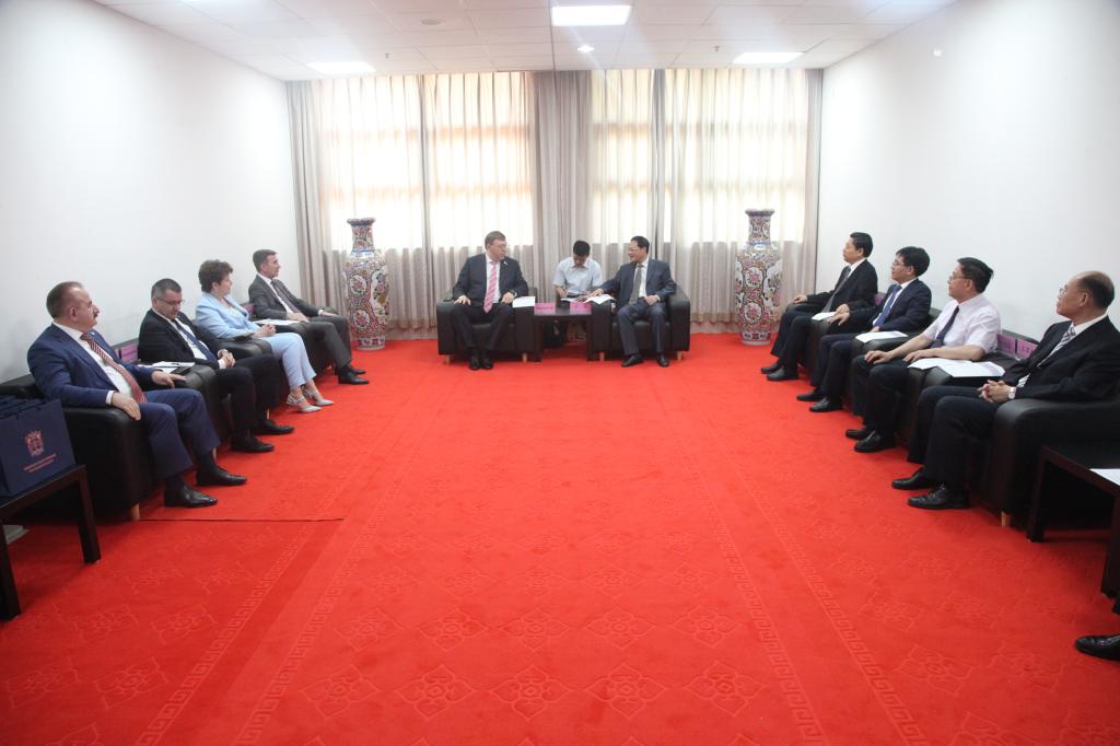 揭牌仪式前,于杰、王艺华一行在体育馆第一贵宾室会见了伊辛科、古西科夫等俄方代表,双方就文化、教育、经贸等方面进行深入交流。此外,在学术报告厅会议室举行中俄参会代表见面会,会上顿河国立技术大学梅什西向孙秀丽、陈松岩、徐晓红、商岳颁发功勋奖章和证书,陈松岩向顿河学院管委会成员俄方代表颁发聘书。