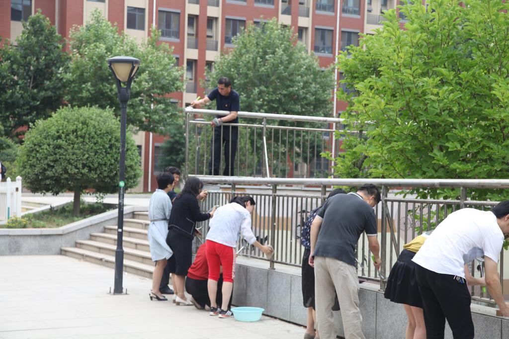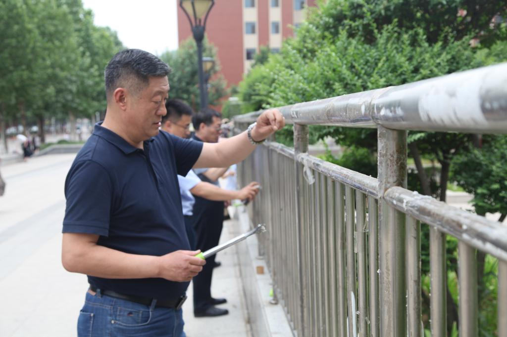 活动中,学校领导身体力行,以十足的干劲投入到卫生环境清理之中。全体机关党员干部团结协作,合理分工,用刮铲刀和钢丝球等去除栏杆、路灯、桥面、树干上的胶带,用不干胶清洁剂和抹布清理悬挂横幅留下的胶粘污渍。党员们以严谨的态度对待每一个细节,大家热情高涨,不怕脏、不怕苦、不怕累,充分展现了党员们敢于冲在前面、敢于抢挑重担的精神风貌,并以此带动全体师生员工自觉参与省级文明校园创建活动,维护校园卫生,共同营造文明和谐、美丽清洁的校园环境。经过大家有条不紊地劳动,长清校区几处环境重点区域变得整洁干净、光洁一新。