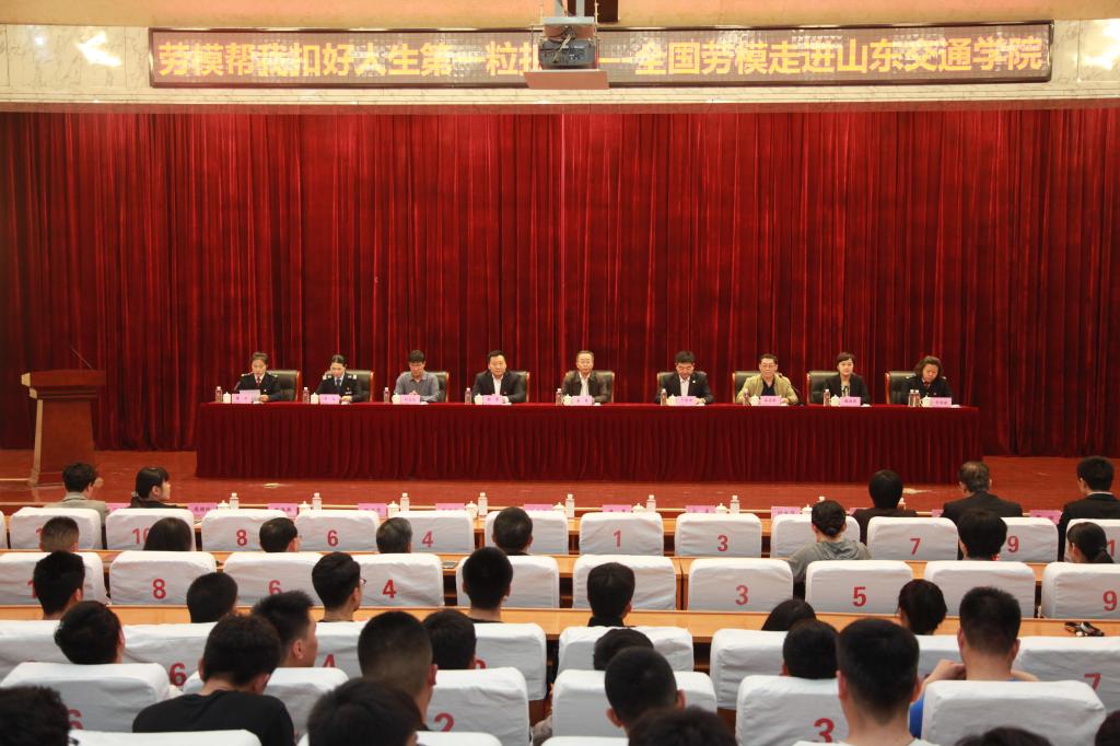 在“五一”国际劳动节来临之际,为进一步贯彻落实全国教育大会精神,大力弘扬劳模精神、劳动精神,引导拔节孕穗期的青年学子崇敬劳模、学习劳模,用新时代劳模精神感染和滋养校园文明,4月24日下午,我校联合两家全国文明单位山东省交通运输集团有限公司和济南市公共交通总公司在长清校区学术报告厅举办了“劳模帮我扣好人生第一粒扣子”——全国劳模走进山东交通学院活动。