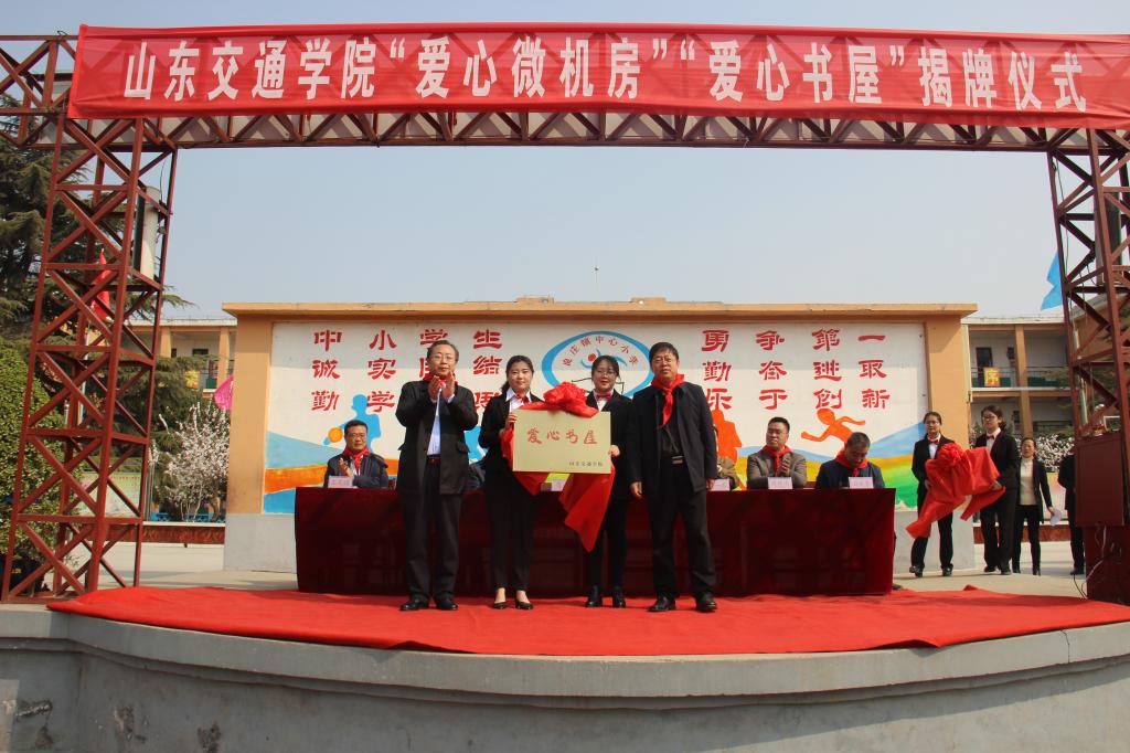 3月19日,山东交通学院“爱心机房”“爱心书屋”揭牌仪式在泰安市良庄镇中心小学举行,学校党委副书记唐勇、泰安市高新区党工委副主任石振房及相关负责同志参加仪式。