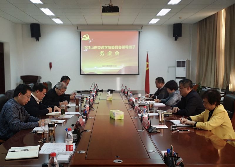 1月22日下午,学校2019年党委领导班子工作务虚会在长清校区办公楼第一会议室召开。学校领导孙秀丽、陈松岩、唐勇、徐晓红、孙云早、李贞涛、孔祥云、范玉斌、姜华平出席会议。会议由党委书记孙秀丽主持。
