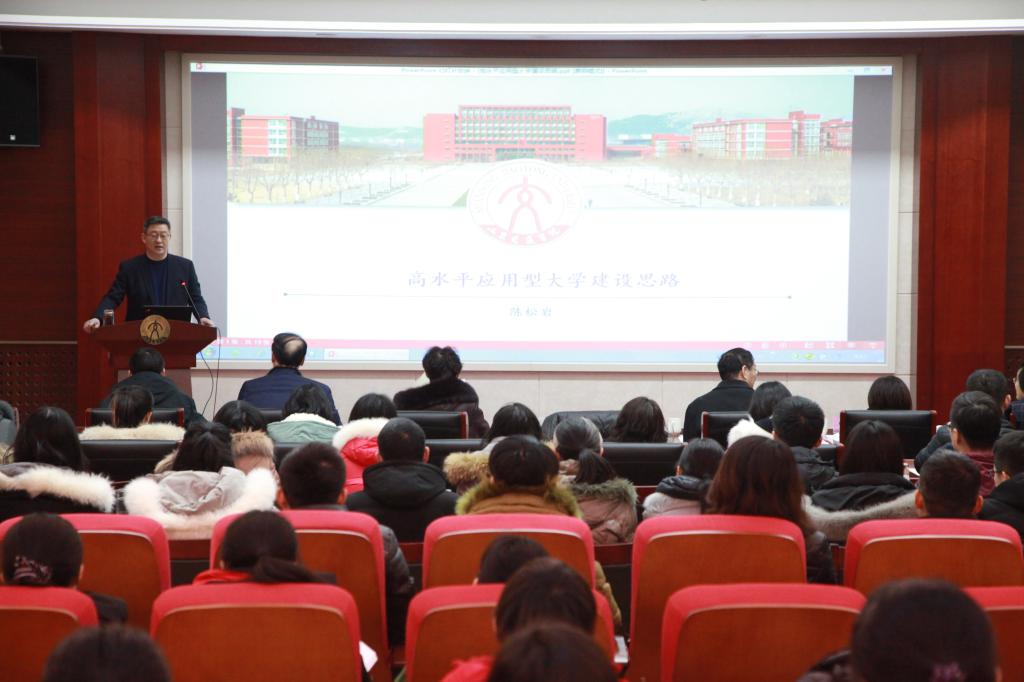 陈松岩作了题为《高水平应用型大学建设思路》的报告。他结合学校发展历程,为新进教师解读了目前我校建设“特色鲜明的高水平应用型大学”的发展目标定位,从优化专业和学科结构、提升人才培养质量等方面阐述了实现路径,并提出工作思路。