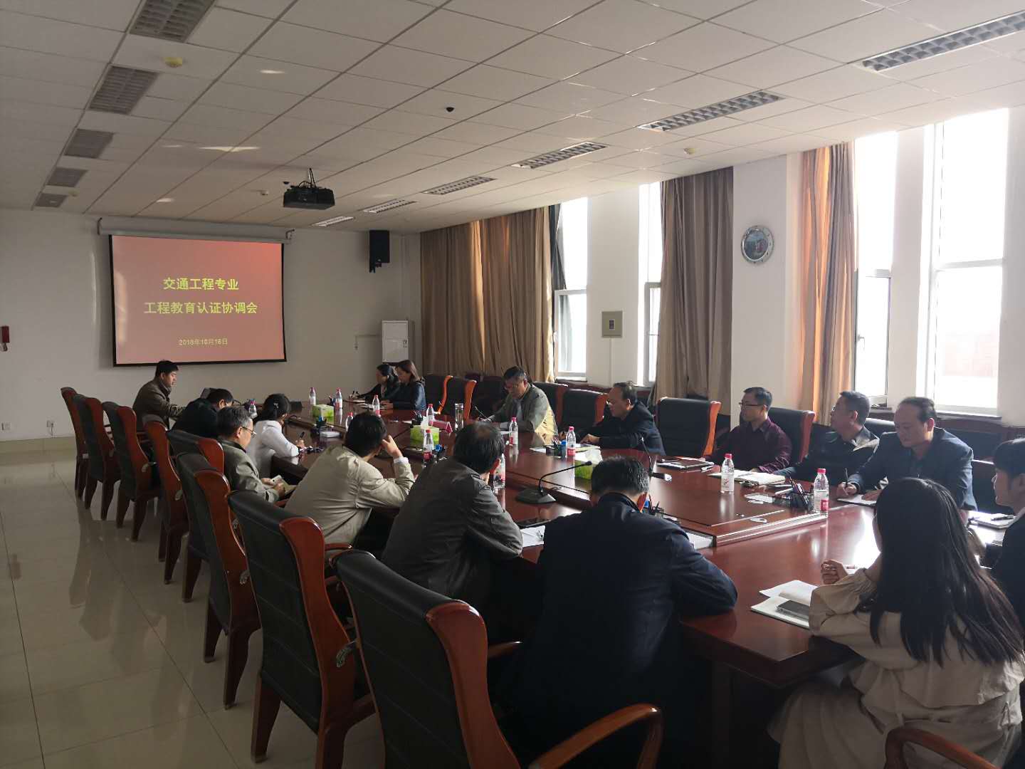 交通与物流工程学院负责人介绍了交通工程专业工程教育认证申请、受理、认证工作进展情况以及认证专家进校后的工作流程、任务分工。与会人员就专家进校见面会、现场考查、学生及教师访谈、教学资料调阅等环节进行沟通交流。