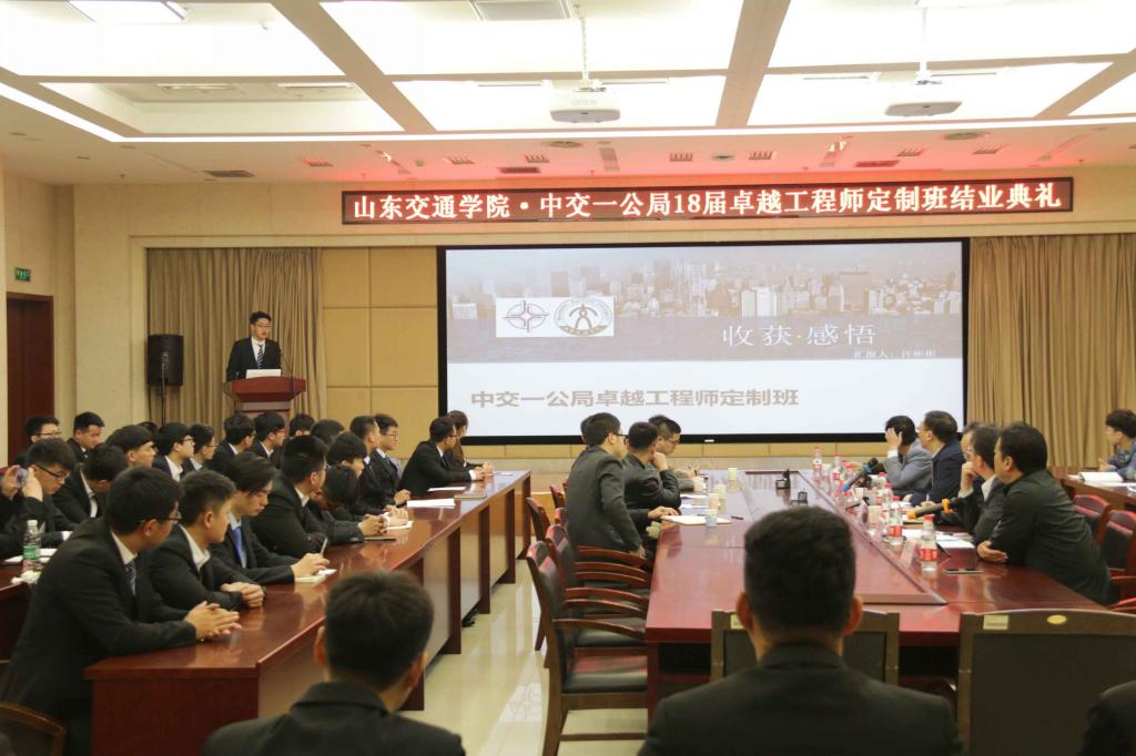 4月10日,中交一公局18届卓越工程师定制班结业典礼在我校举行。中交一公局人力资源部副总经理黄卫国等7人、我校相关单位(部门)负责人出席典礼,定制班全体学员、19届定制班部分学员、18届部分毕业生共100余人参加了典礼。