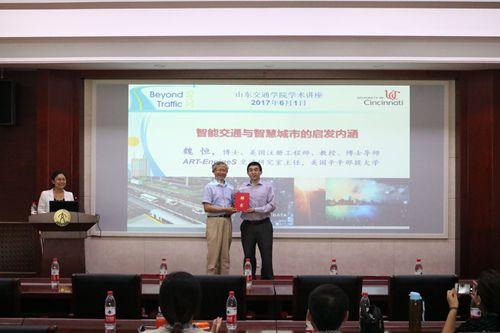 聘任仪式结束后,魏恒在我校“成长论坛”第31讲上作了题为“智能交通与智慧城市的启发内涵”的学术报告。他结合自己的工作经历,介绍了交通视角下智慧城市的基本理论、存在的问题及未来的发展趋势,并就智慧城市信息获得与应用,以及人工智能、机器人、车联网等国内外的新技术和手段的应用进行了讲述和探讨。最后,魏恒对老师和同学们提出的问题作出解答,并就新技术的应用、科学研究的基本思路等分享自己的相关经验。