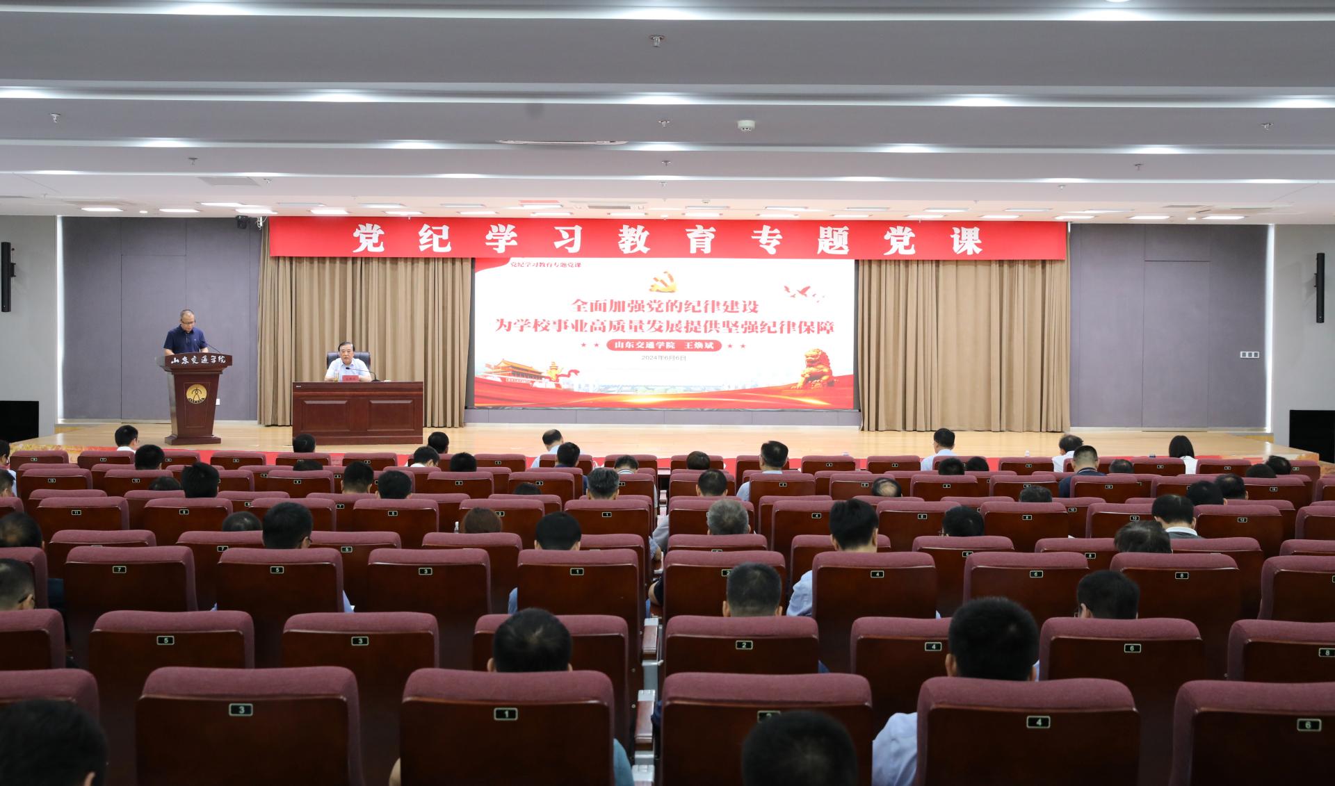 为深入学习习近平新时代中国特色社会主义思想,学习贯彻习近平总书记视察山东重要讲话重要指示精神,推动学校党纪学习教育走深走实,6月6日上午,学校党委书记王焕斌在长清校区明德楼101报告厅为党员干部讲授纪律党课。会议由党委副书记李贞涛主持。