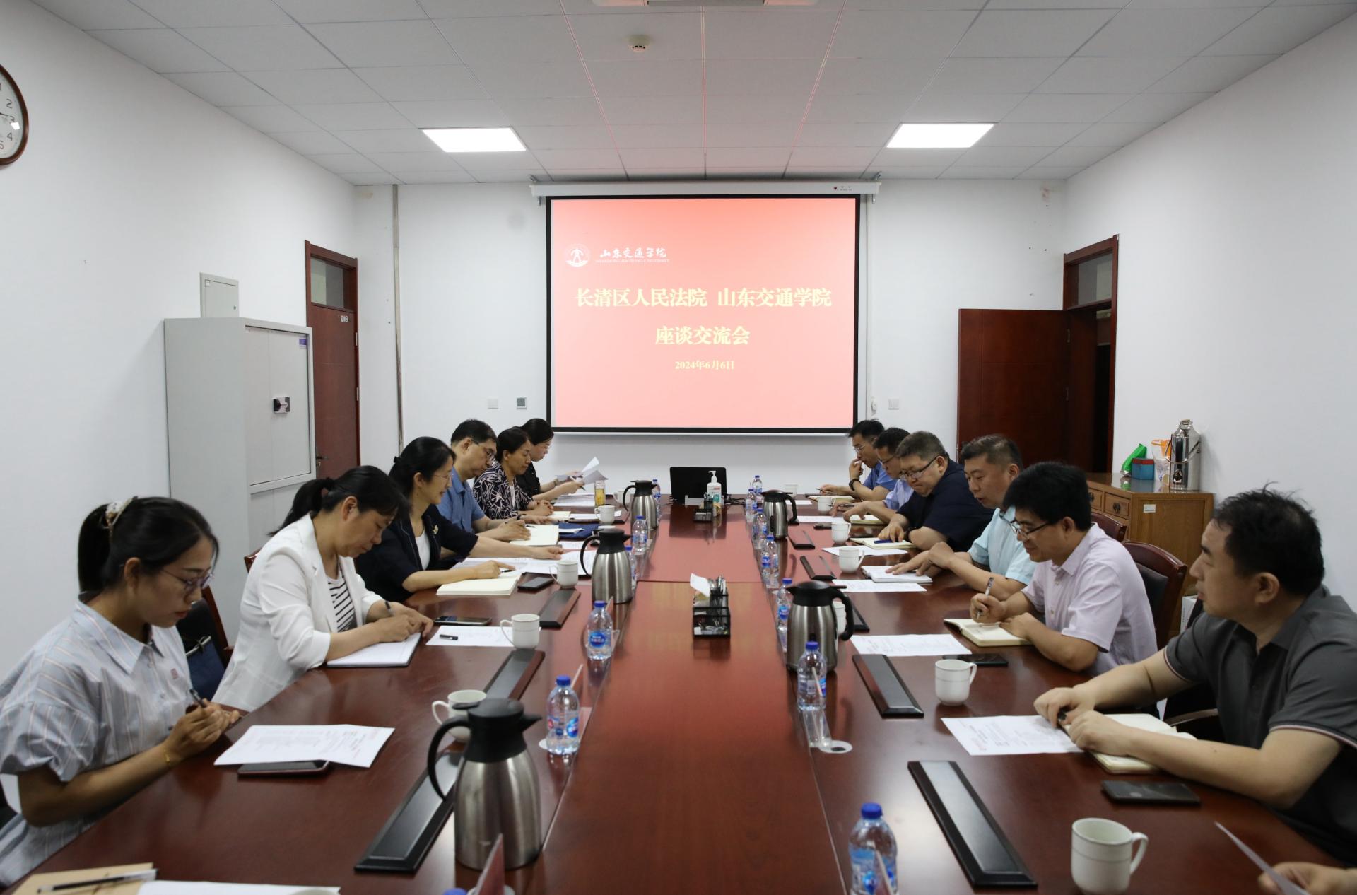 在座谈交流会上,交通法学院党委书记闫淼详细介绍了学院发展历程、办学特色、师资力量、学科专业建设、科研成果、人才培养情况。严琳琳介绍了长清区人民法院在加强党建引领、服务发展大局、提升审判质效、夯实队伍建设等方面工作情况,征求了学校相关部门负责人在法院审判执行、司法服务、院校合作等方面的意见建议。与会人员围绕党建共建、合同管理、法律援助、法律实践教学、学生权益保护、学生实习就业等方面进行交流探讨。