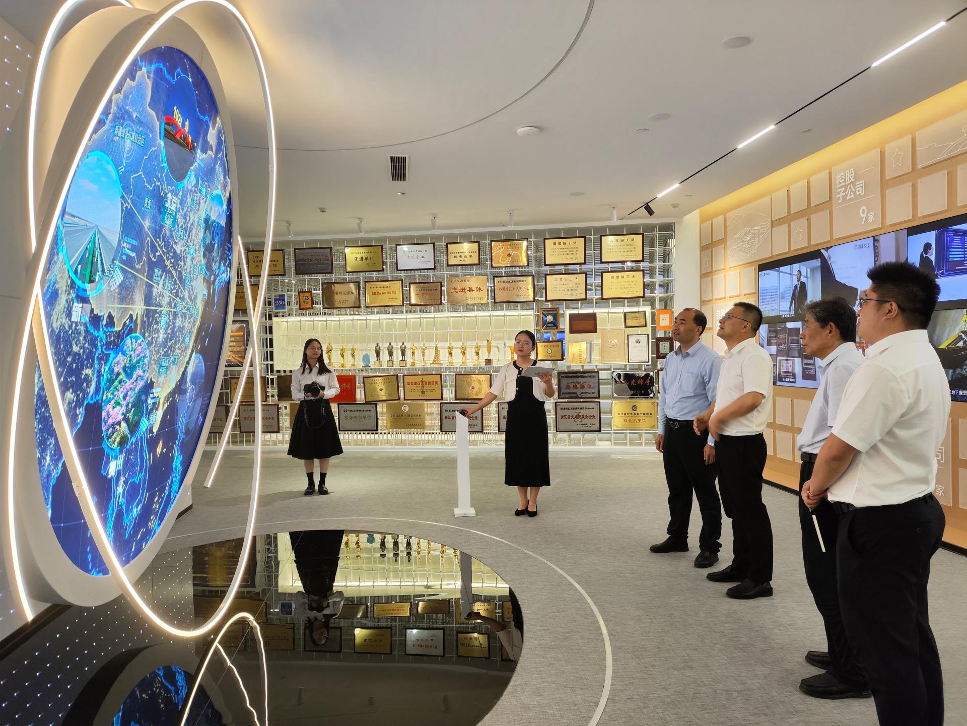 在浙江交工集团,调研组一行参观了集团展示馆,了解集团发展历程、企业文化、科技创新成果等,随后进行座谈交流。集团党委副书记、总经理杨剑代表集团向校企长期合作取得的系列成绩表示热烈祝贺与衷心感谢。孔伟金围绕服务交通强国战略和地方经济社会发展介绍了学校的发展沿革、人才培养、师资队伍、学科专业、科研平台、科技创新及标志性成果等基本情况,希望通过本次访企拓岗调研活动,促进校企双方深度融合,开展产、学、研、用全方位深入合作,打造可持续发展的战略合作伙伴关系。