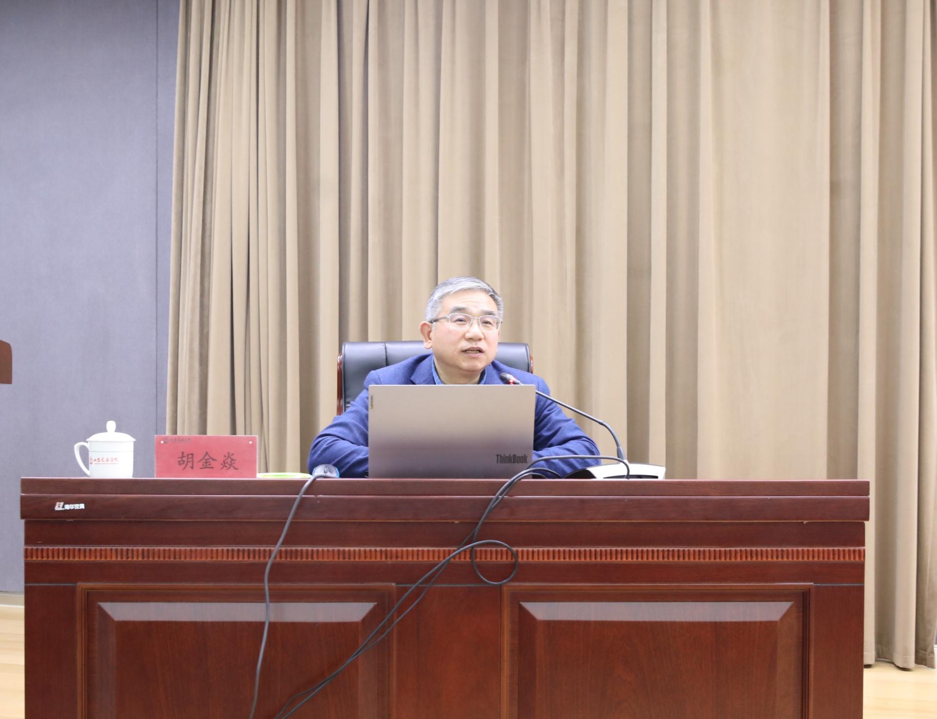 签约仪式后,胡金焱教授在第五期干部大讲堂中以《在与时俱进中探索立德树人的有效途径》为题作专题报告,报告结合高等教育变革,从“互联网、信息化时代对高等教育带来的冲击”“新时代高等教育教学改革的新要求”“‘重塑’高等教育教学模式”“探索思政育人的有效途径”“守护大学教师的职责与情怀”五个方面系统阐述了新时代高等教育教学改革的新要求。报告具有很强的指导性和启发性,为学校下一步高质量开展各项工作提供了新方法、新思想和新路径。