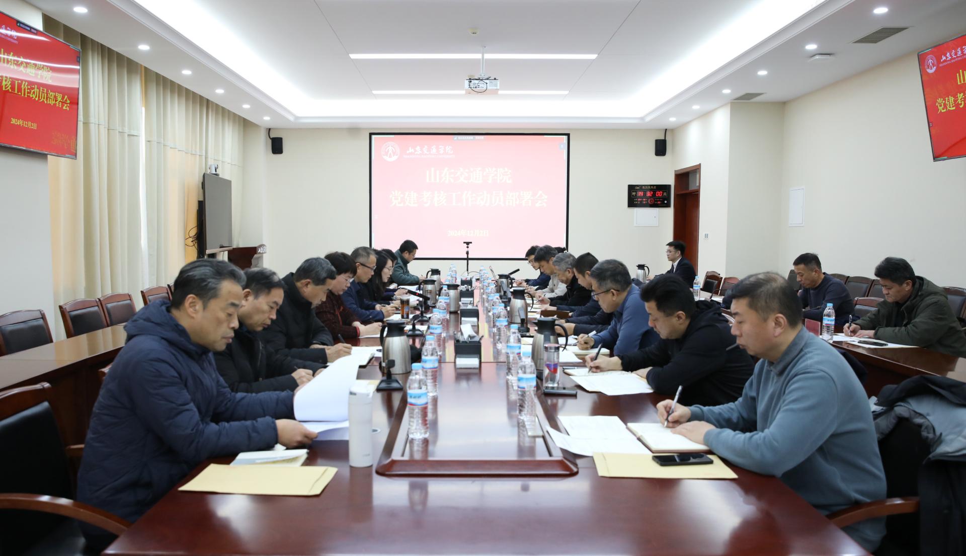 李贞涛指出,党建考核工作既是学校高质量发展绩效考核的重要组成部分,更是对学校党委年度工作的整体评价,对学校未来的建设发展起着举足轻重的作用。他强调,一是要提高政治站位,坚持“大党建”理念,把党建考核作为检验党建工作成效和高质量发展成果的重要契机和有效措施,教育引导全体师生充分了解学校年度重点任务和工作成绩。二是要做好统筹谋划,党委组织部要牵头做好各项准备工作,各基层党委(党总支)要坚持统一思想、尽早布局,全面展现交院师生干事创业、积极向上的良好精气神。三是树牢紧迫意识,党建考核时间紧、任务重、要求高,全校上下要以“不进则退、慢进亦是退”的紧迫感,全力抓好各项指标跨越赶超,同时做好院系级党组织党建考核的启动工作,力争取得优异成绩。