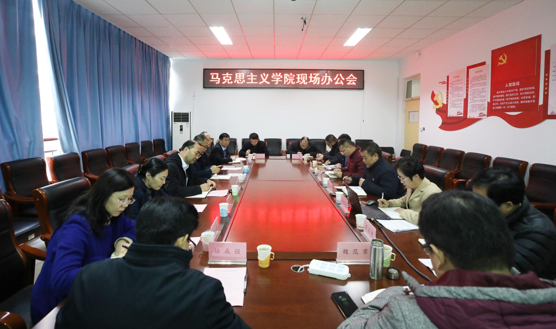 党委办公室(学校办公室)、党委宣传部、人力资源处(教师工作部、人才工作办公室)、教务处、科研处、研究生工作处等职能部门负责人、马克思主义学院负责人及教师代表参加会议。