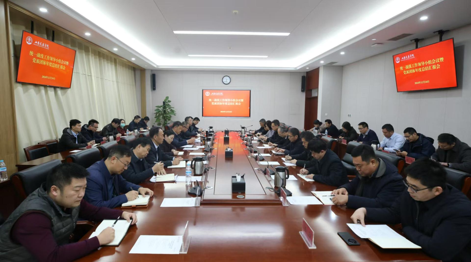 12月24日,学校在长清校区明德楼303会议室召开统一战线工作领导小组会议暨党派团体年度总结汇报会。学校党委书记王伟,党委副书记李贞涛,党委委员、副院长徐静,党委委员、党委组织部部长王兴盈出席会议。会议由李贞涛主持。