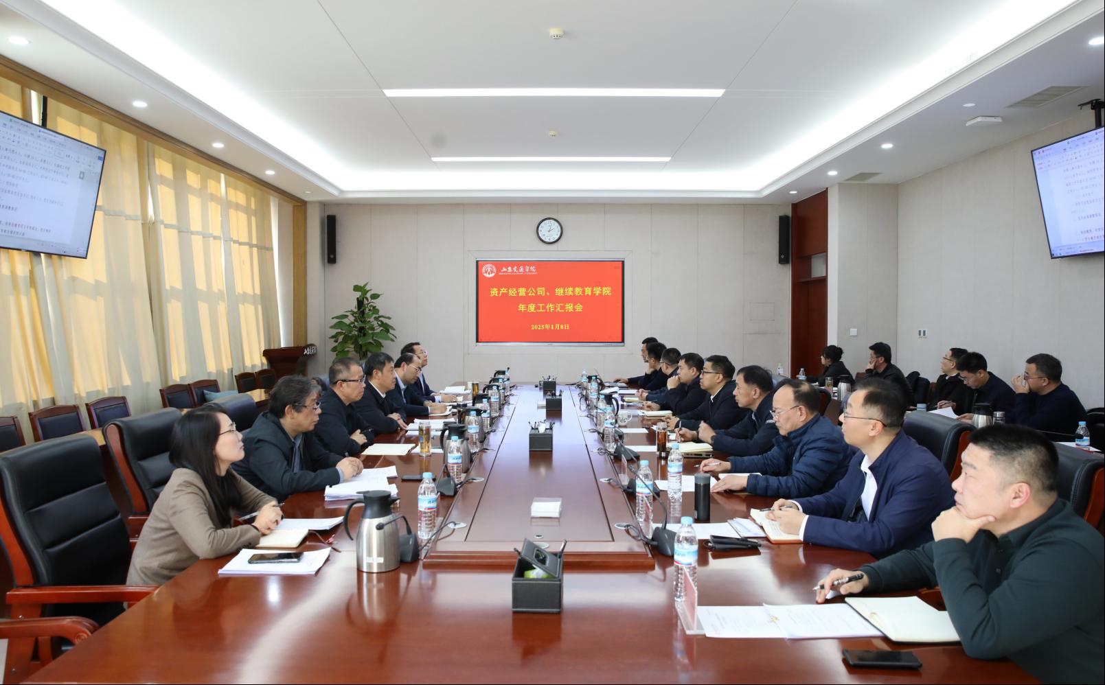 1月8日下午,学校资产经营公司、继续教育学院年度工作汇报会在长清校区明德楼303会议室召开。学校党委领导班子成员王伟、孔伟金、李贞涛、姜华平、王保群、徐静、王兴盈出席会议。会议由党委委员、副院长徐静主持。
