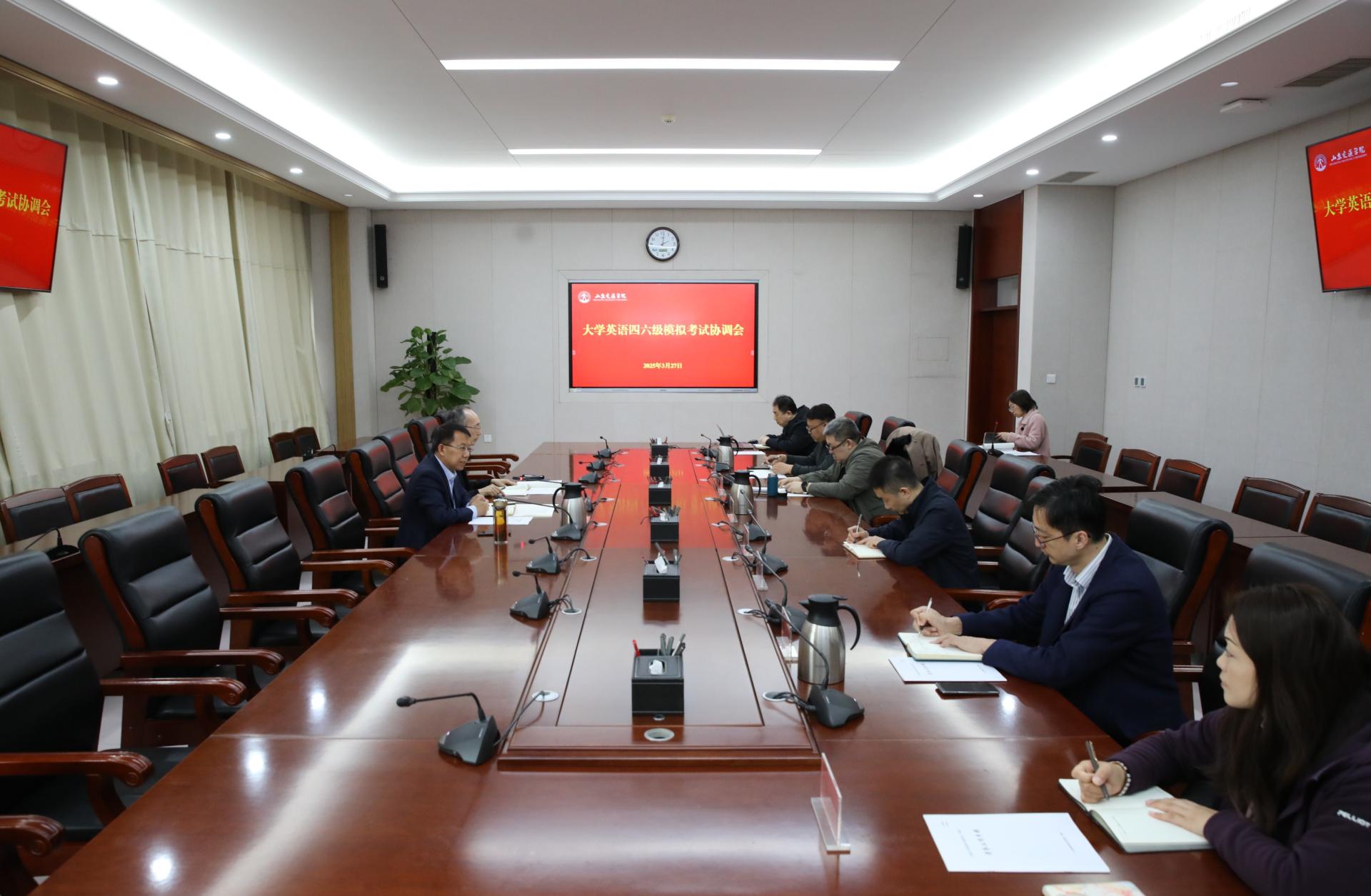 3月27日下午,学校在长清校区明德楼303会议室召开大学英语四六级模拟考试协调会。会议由学校党委委员、副院长姜华平主持。