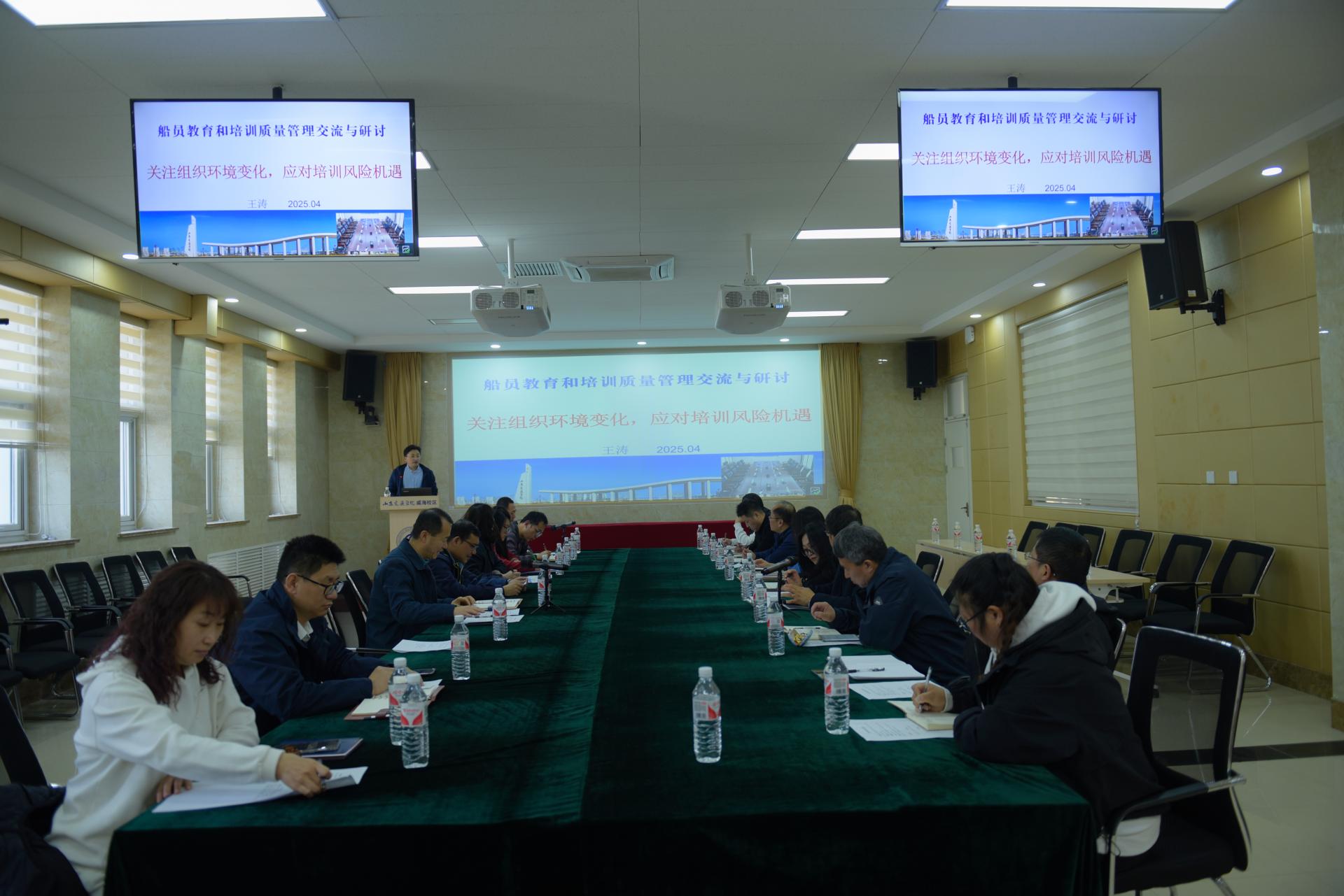 会议邀请国家海事局质量体系外审专家王涛副教授担任主讲嘉宾。王涛介绍了海事公约、法规的历史沿革,罗列分析了国内航海类本科院校办学规模,对比分析了山东省内18家航海类院校机构的发展趋势,并从师资队伍、体系运行、培训项目、设备设施等9个方面阐述了我校航海教育培训面临的机遇和挑战,重点解读了2025版《<船员培训管理规则>实施办法》修订内容,并结合法规新要求对我校航海教育培训工作提出了改进意见建议。