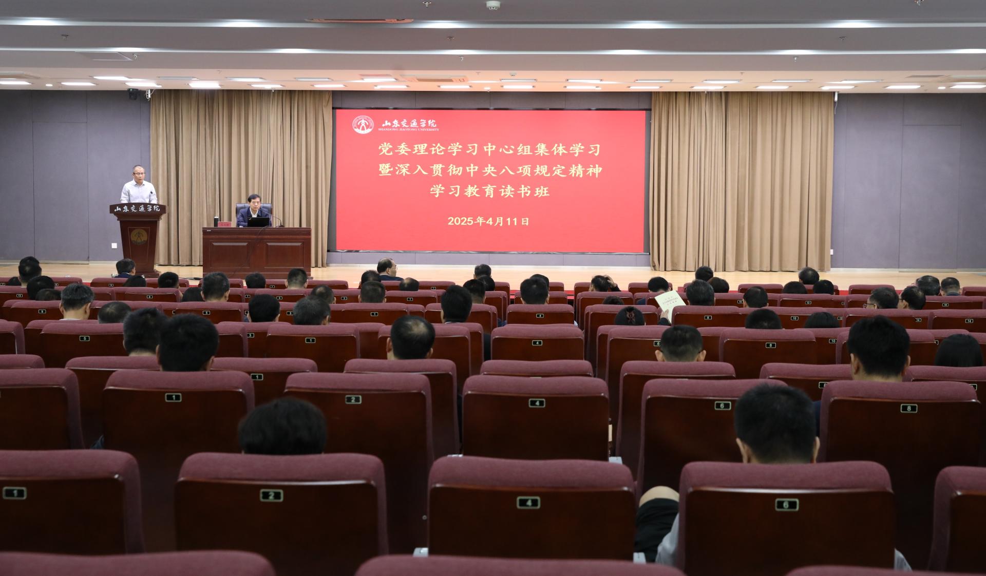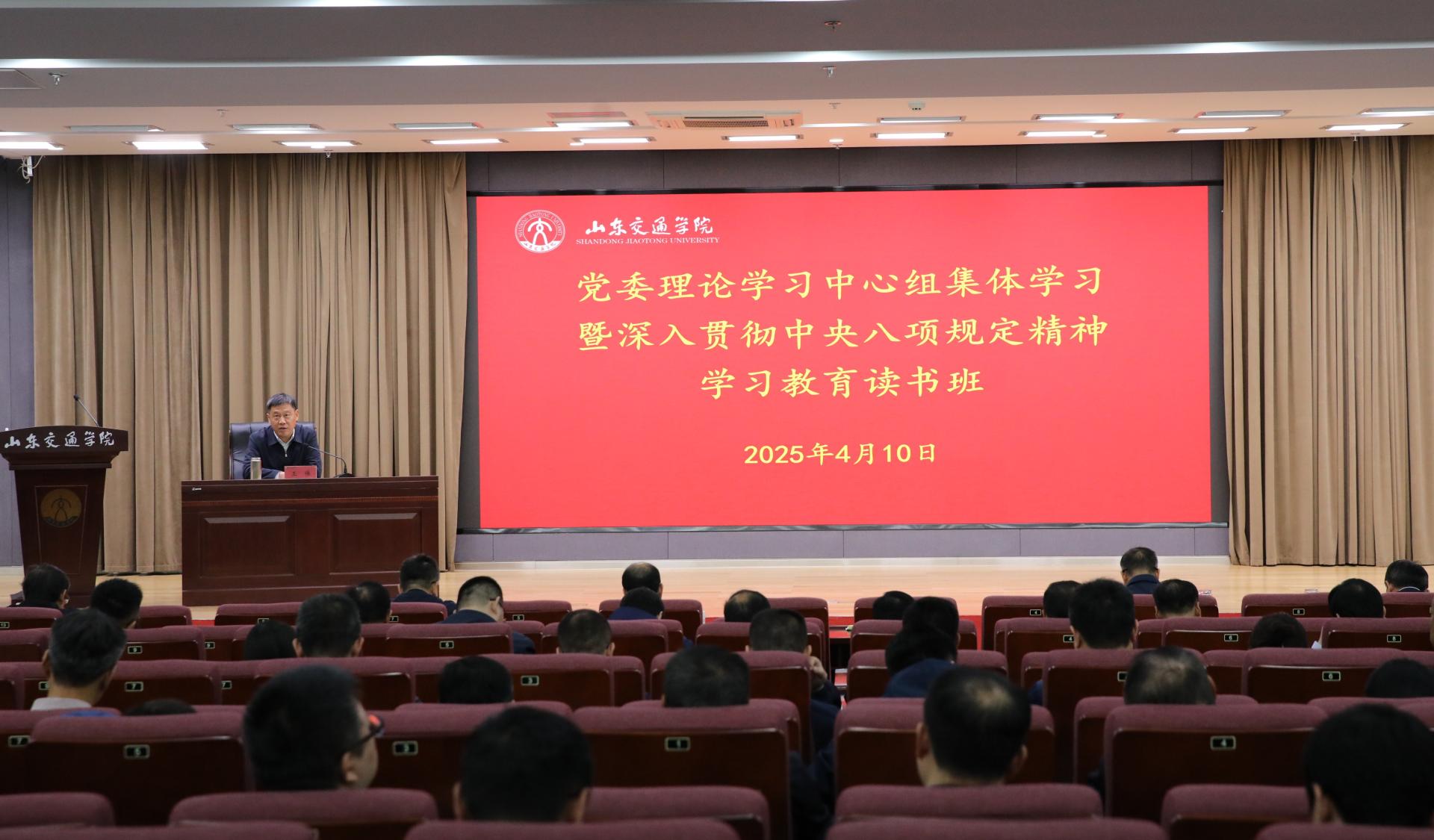 4月10日至11日,学校党委理论学习中心组集体学习暨深入贯彻中央八项规定精神学习教育读书班在长清校区举行。党委书记王伟作动员讲话,并讲专题党课。学校党委领导班子成员孔伟金、李贞涛、刘世杰、姜华平、王保群、李秀领、徐静出席。会议由党委副书记李贞涛主持。
