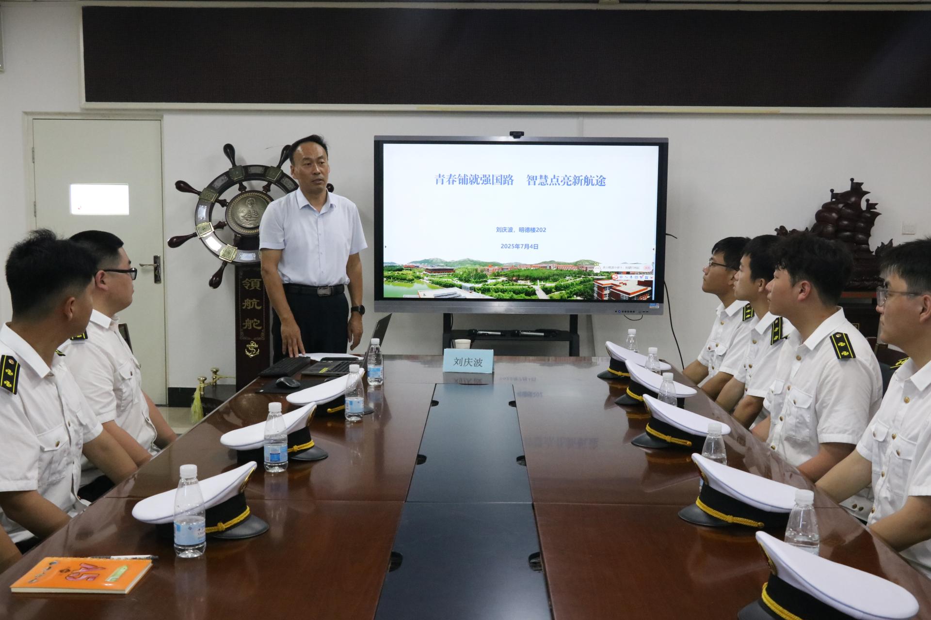 学校党委委员、党委统战部部长刘庆波以《青春铺就强国路·智慧点亮新航途》为题,为航运学院卓越班船电235班学生讲授思政课。他讲述了我国从“交通大国”迈向“交通强国”的征程与挑战,结合詹天佑等历史青年榜样和丁茂家、齐海滨、韩凤启等行业校友先锋的生动事迹,激励同学们以榜样为指引,用忠诚担当的政治品格、精益求精的工匠精神、勇于突破的创新思维、坚韧不拔的意志品质、卓越高效的团队协作,为海洋强国建设贡献青春力量。