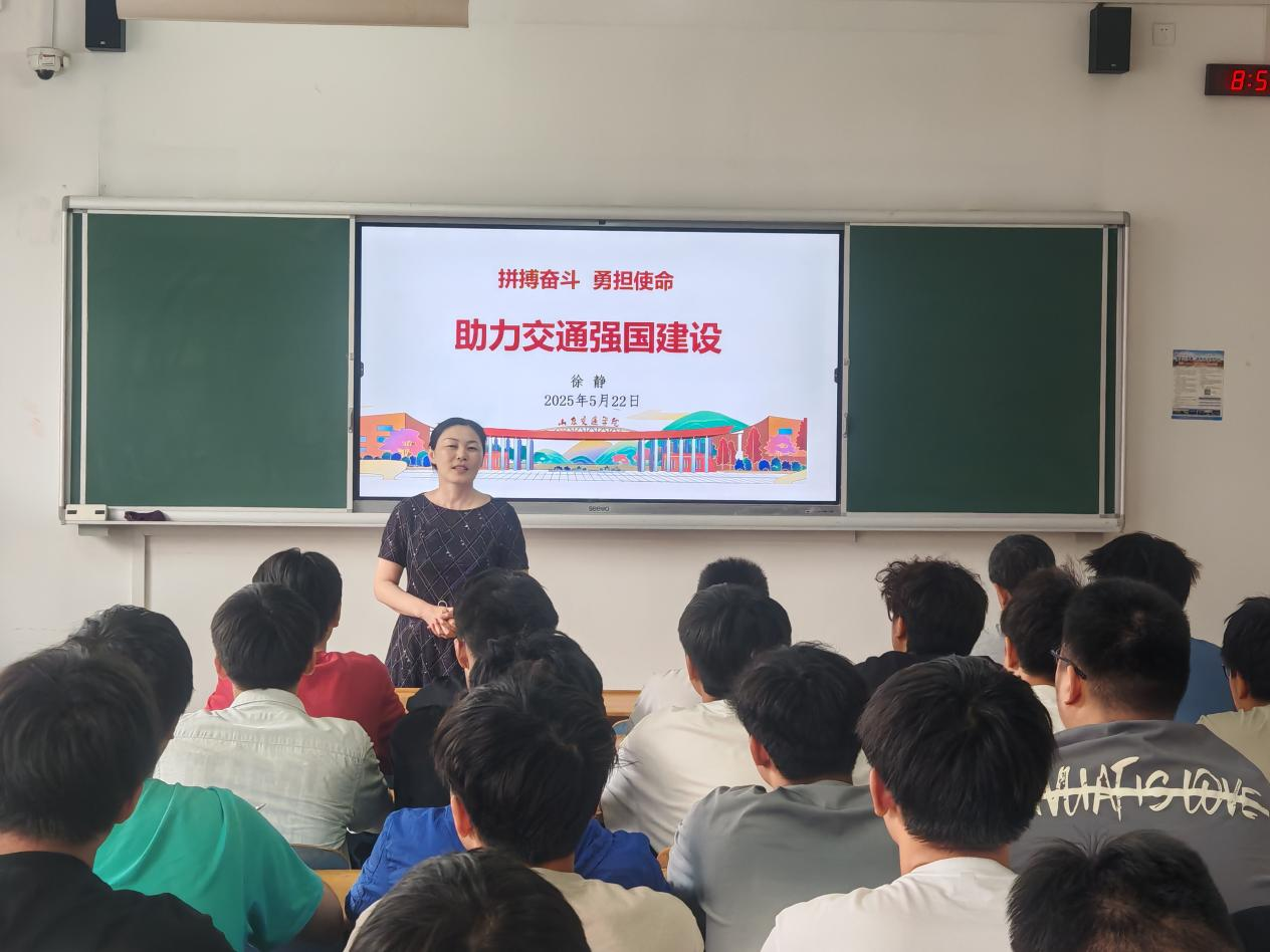 学校党委委员、副院长徐静以《拼搏奋斗 勇担使命 助力交通强国建设》为题,为汽车工程学院交通运输242班学生讲授思政课。她围绕“历史坐标中的青年使命与精神觉醒”“时代坐标中的中国式现代化”“学校发展的光辉历程”“交通报国 奉献交院力量”四个方面,结合学校建校以来在服务国家战略中的实践案例,勉励同学们将个人成长融入交通强国建设,以勤学实干锤炼本领,用青春力量践行报国之志。