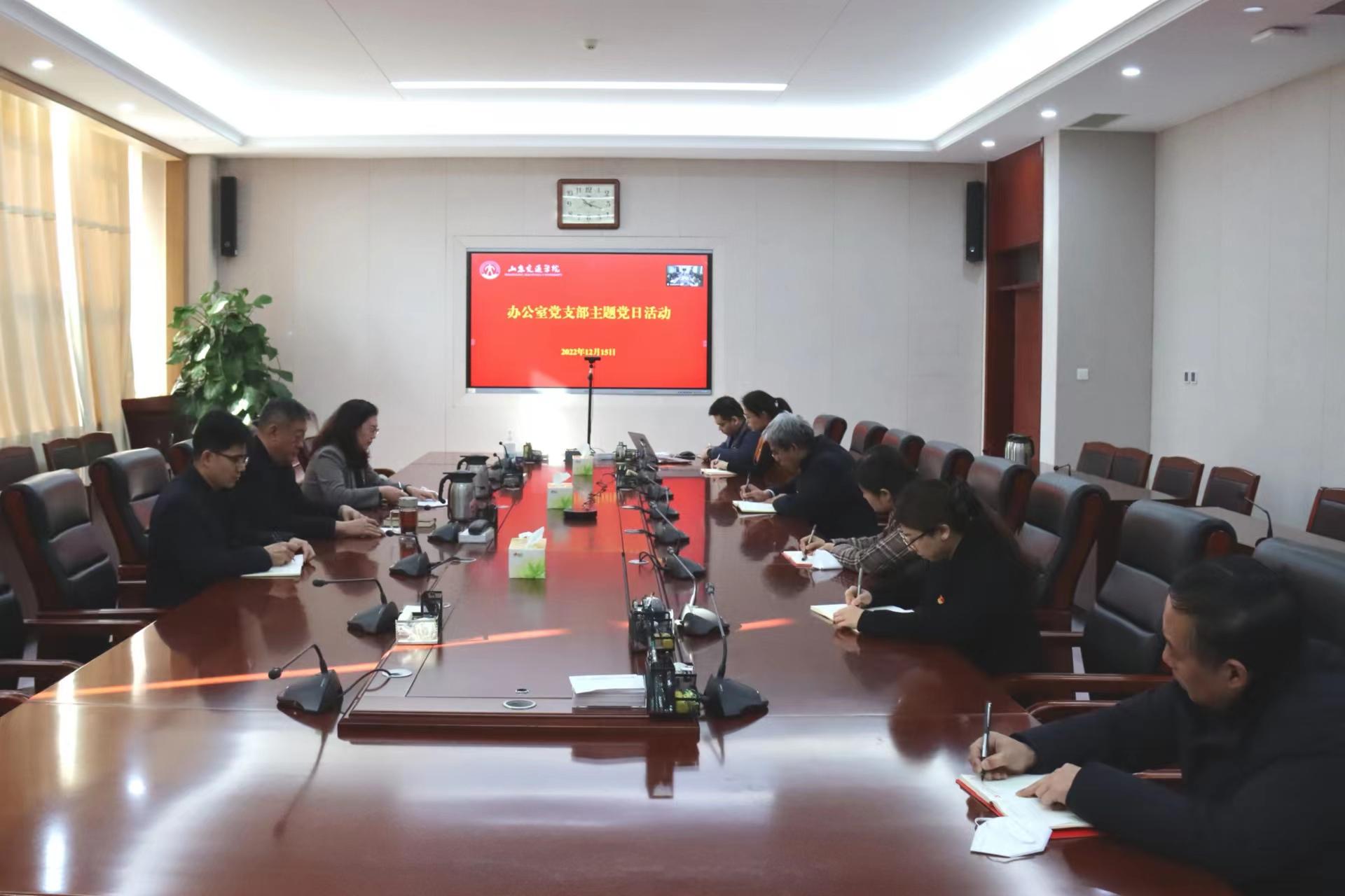 12月15日上午,办公室党支部在长清校区明德楼303会议室开展主题党日活动。学校党委副书记、院长陈松岩作为普通党员参加。会议由党支部书记孙迎主持。