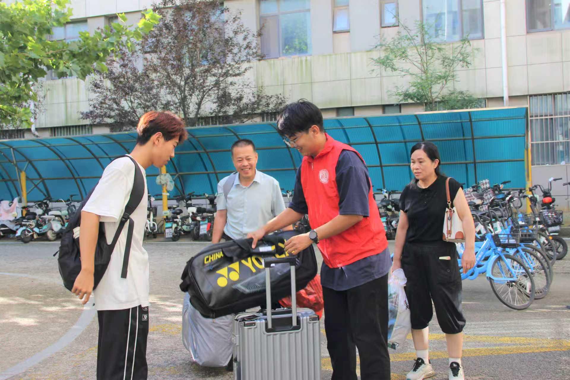 学校线上组建官方新生群,畅通答疑渠道,发布详尽的报到须知和温馨提示,利用校院两级媒体平台,构建迎新宣传工作矩阵,助力新生提前了解并融入崭新的大学生活;由师生党员、共青团员及普通学生组成的志愿者团队热情对接每一位新生,提供道路引导、答疑解惑和行李搬运等服务。
